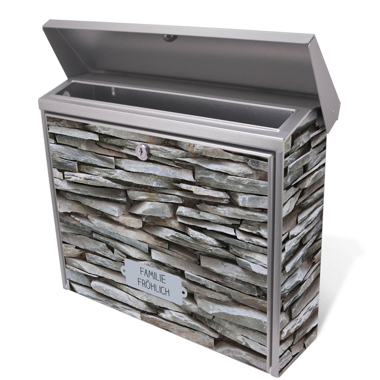Der Postkasten mit Steinwand Motiv hat ein sehr ansprechendes und zeitloses Design. Unsere Motivpalette hält jede Menge Varianten bereit, ob klassisch, modern, verspielt oder witzig - für jeden haben wir das passende Motiv parat. Der Briefkasten ist das Aushängeschild Ihres Hauses.