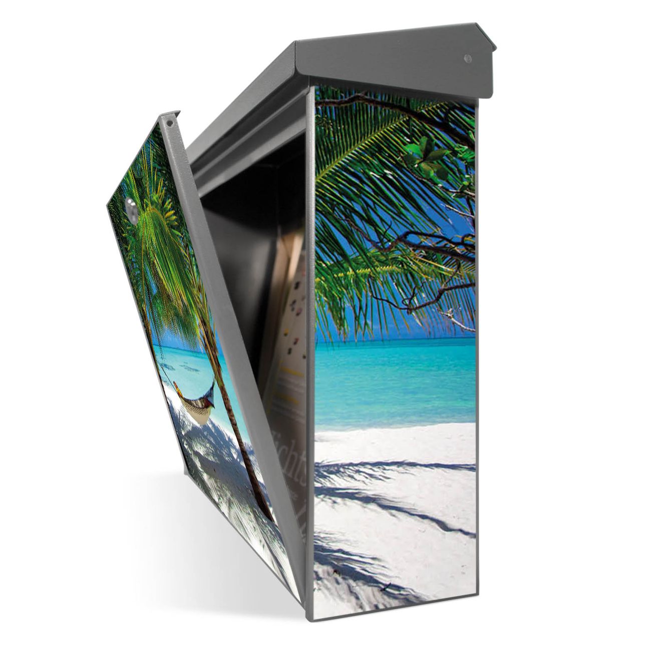 Der Postkasten mit Strand Motiv hat ein sehr ansprechendes und zeitloses Design. Unsere Motivpalette hält jede Menge Varianten bereit, ob klassisch, modern, verspielt oder witzig - für jeden haben wir das passende Motiv parat. Der Briefkasten ist das Aushängeschild Ihres Hauses.