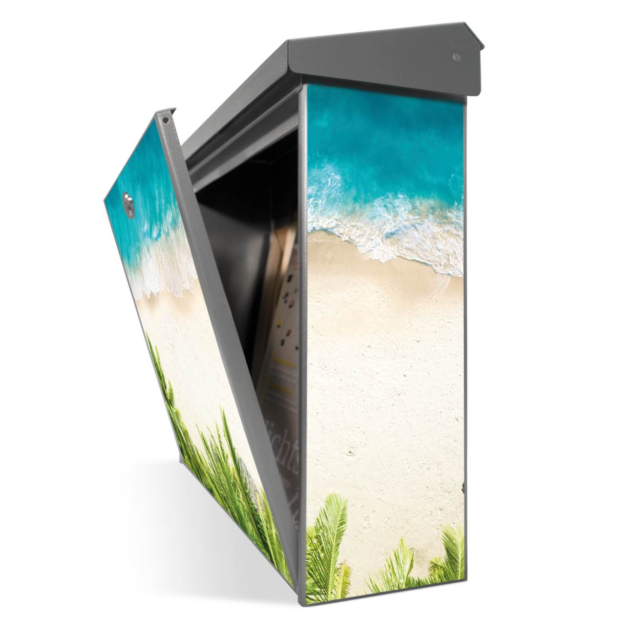 Der Postkasten mit Strandtag Motiv hat ein sehr ansprechendes und zeitloses Design. Unsere Motivpalette hält jede Menge Varianten bereit, ob klassisch, modern, verspielt oder witzig - für jeden haben wir das passende Motiv parat. Der Briefkasten ist das Aushängeschild Ihres Hauses.
