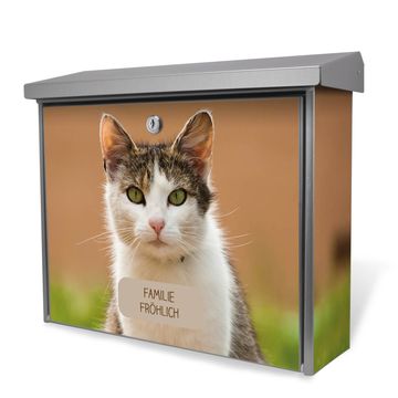 Der Briefkasten besteht aus Edelstahl, einem hochwertigen Material das witterungsbeständig ist. Das Motiv besteht aus einer wetter- und UV-festen Folie, die Ihren Briefkasten zusätzlich vor Kratzern schützt. Der Postkasten ist 31,5cm hoch, 38,5cm breit und 12cm tief. Der Briefeinwurf ist 33,2cm x 2,7cm, Format DIN C4. Der Briefkasten wird mit Montagematerial und zwei Schlüsseln geliefert.