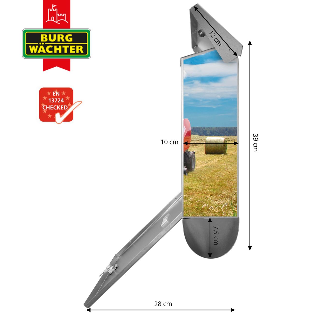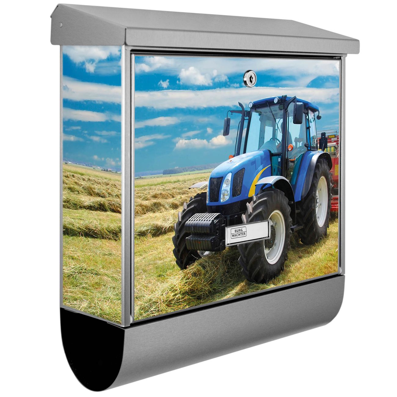 Der BURG-WÄCHTER Edelstahl Briefkasten mit Motiv Traktor und Zeitungsrolle bietet Ihnen mit seinem Fassungsvermögen genügend Platz auch für große A4 Sendungen und Zeitschriften. Das integrierte Regendach schützt Ihre Post vor dem Eindringen von Regen.