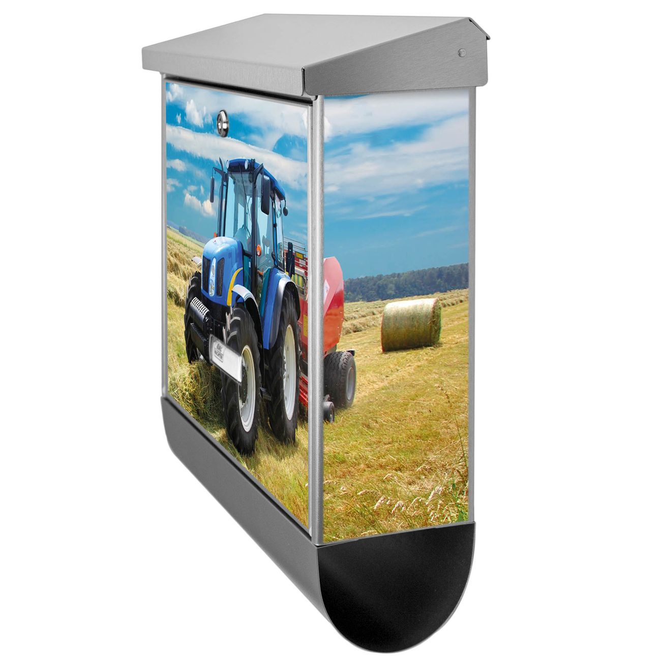 Der Traktor Motivbriefkasten hat ein sehr ansprechendes und zeitloses Design. Unsere Motivpalette hält jede Menge Varianten bereit, ob klassisch, modern, verspielt oder witzig - für jeden haben wir das passende Motiv parat. Der Briefkasten mit Zeitungsfach ist Ihr Aushängeschild, heben Sie Sich ab ohne auf Funktionalität zu verzichten.