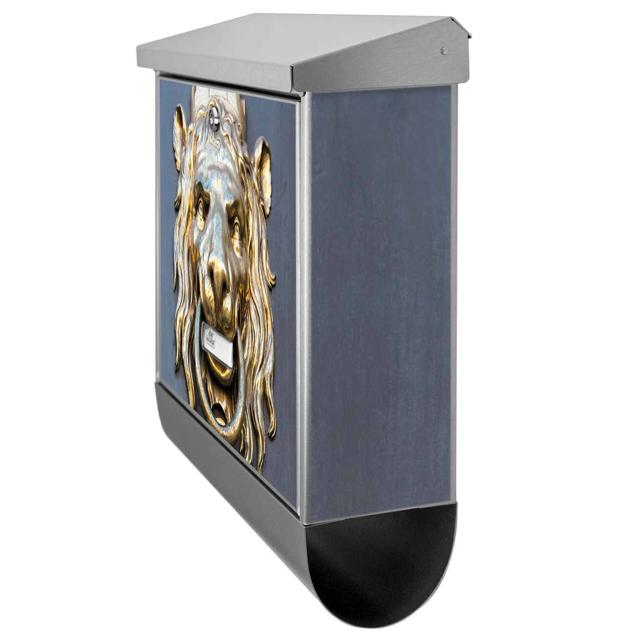 Der Türklopfer Löwe Motivbriefkasten hat ein sehr ansprechendes und zeitloses Design. Unsere Motivpalette hält jede Menge Varianten bereit, ob klassisch, modern, verspielt oder witzig - für jeden haben wir das passende Motiv parat. Der Briefkasten mit Zeitungsfach ist Ihr Aushängeschild, heben Sie Sich ab ohne auf Funktionalität zu verzichten.
