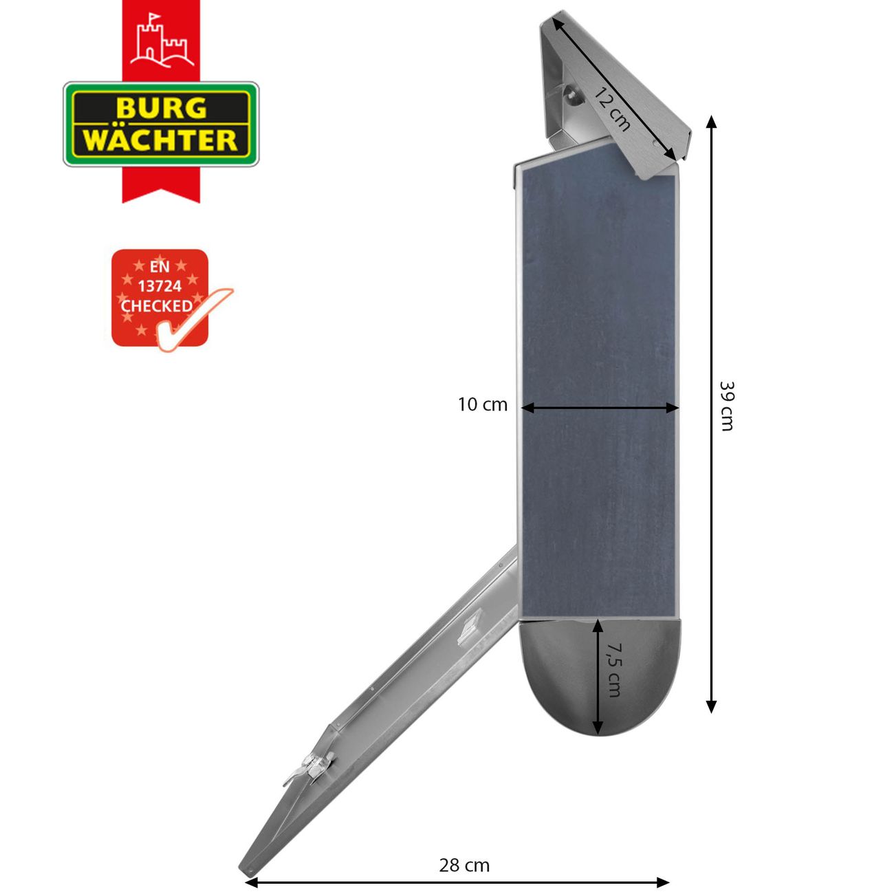 Der BURG-WÄCHTER Edelstahl Briefkasten mit Motiv Türklopfer Löwe und Zeitungsrolle bietet Ihnen mit seinem Fassungsvermögen genügend Platz auch für große A4 Sendungen und Zeitschriften. Das integrierte Regendach schützt Ihre Post vor dem Eindringen von Regen.