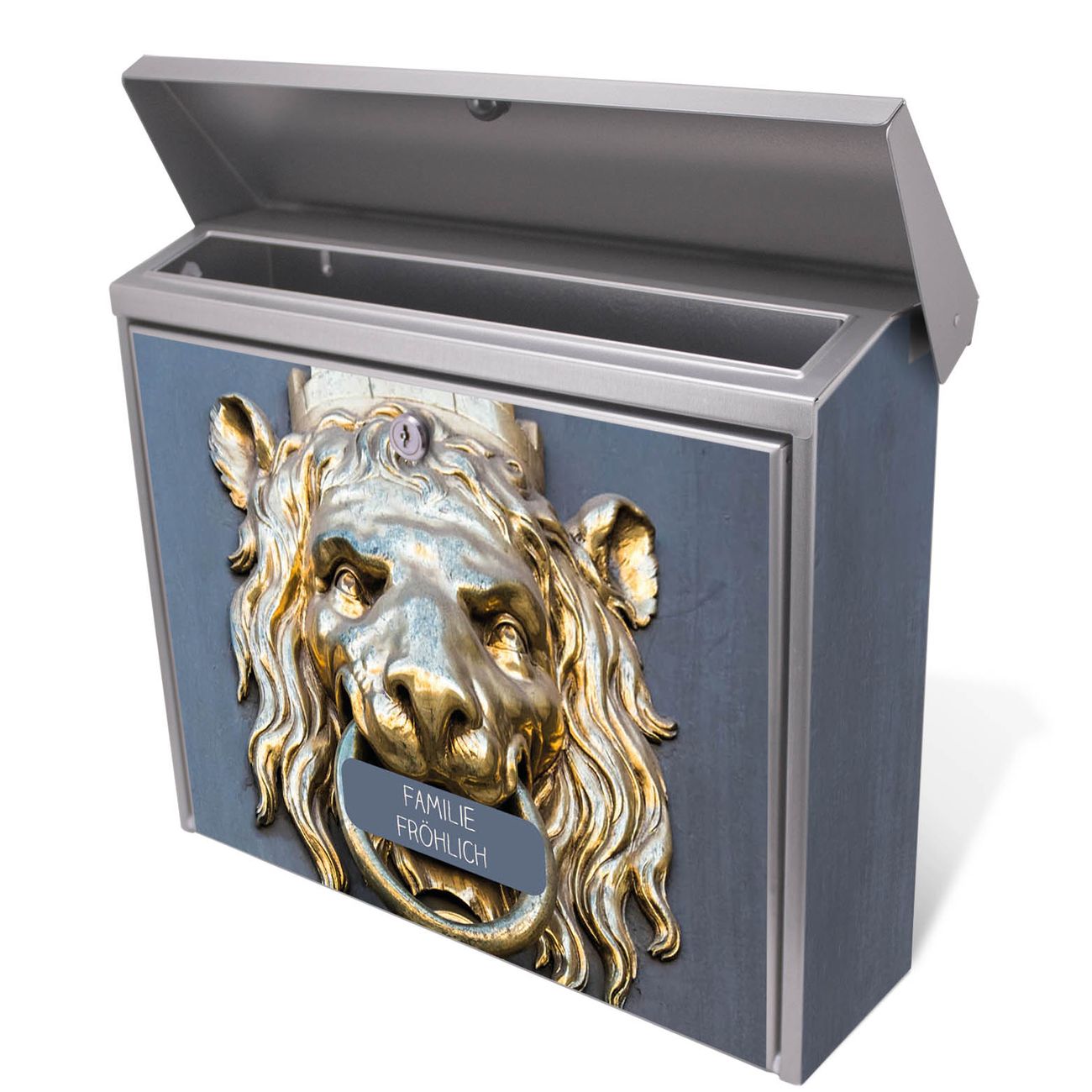 Der Postkasten mit Türklopfer Löwe Motiv hat ein sehr ansprechendes und zeitloses Design. Unsere Motivpalette hält jede Menge Varianten bereit, ob klassisch, modern, verspielt oder witzig - für jeden haben wir das passende Motiv parat. Der Briefkasten ist das Aushängeschild Ihres Hauses.