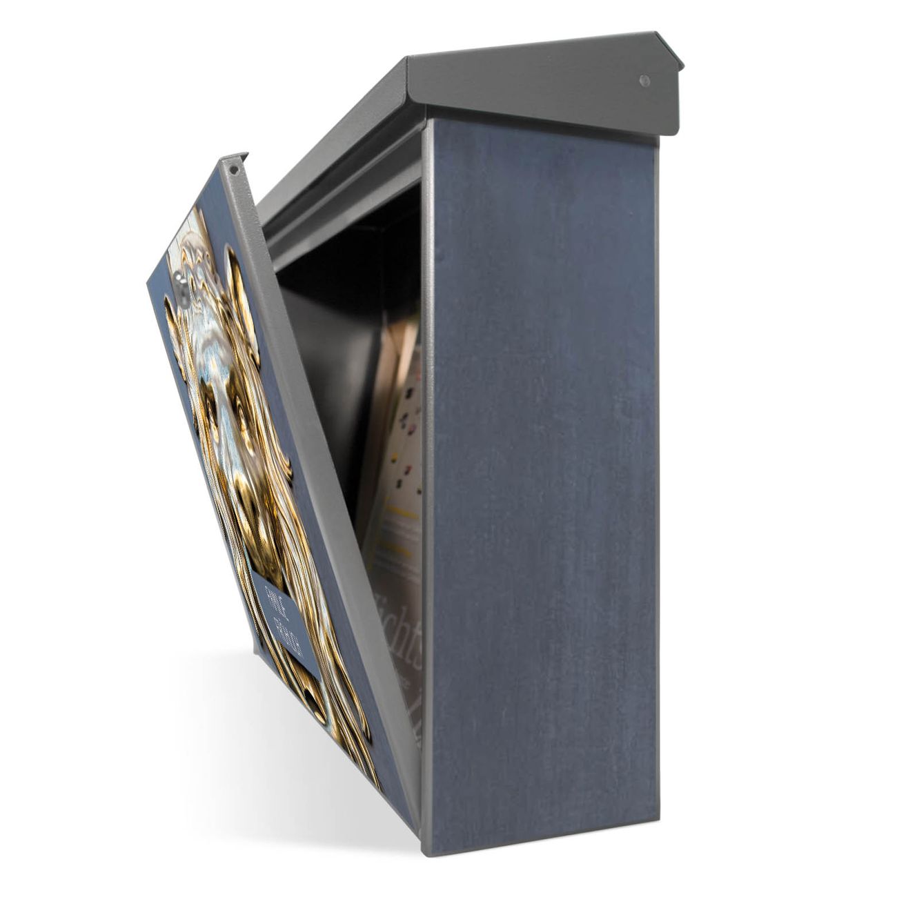 Sie können diesen Briefkasten sowohl als Wandbriefkasten montieren oder mit dem passenden Ständer als Standbriefkasten einbetonieren. Die gestaltete Motivfolie ist absolut wetterfest, UV-beständig und ein zusätzliches Schutzlaminat bewahrt Ihren Briefkasten vor unnötigen Kratzern.