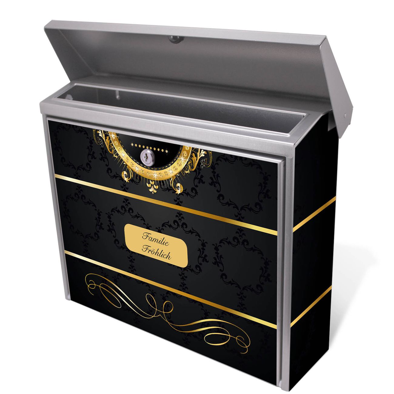 Der Briefkasten besteht aus Edelstahl, einem hochwertigen Material das witterungsbeständig ist. Das Motiv besteht aus einer wetter- und UV-festen Folie, die Ihren Briefkasten zusätzlich vor Kratzern schützt. Der Postkasten ist 31,5cm hoch, 38,5cm breit und 12cm tief. Der Briefeinwurf ist 33,2cm x 2,7cm, Format DIN C4. Der Briefkasten wird mit Montagematerial und zwei Schlüsseln geliefert.