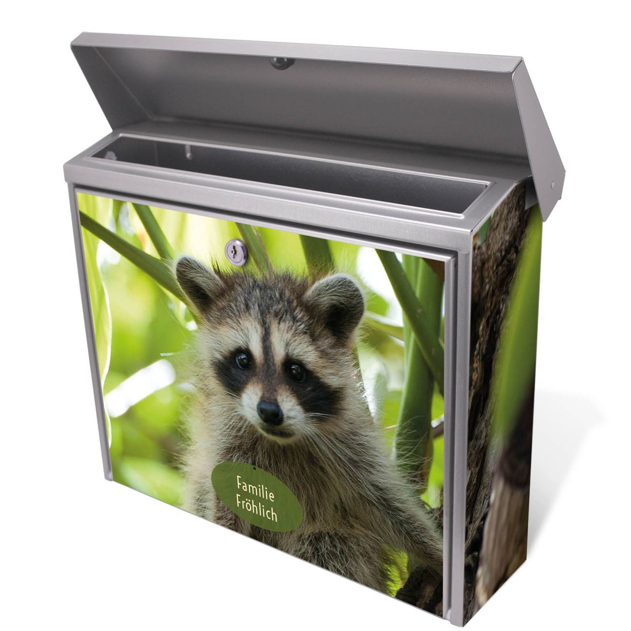 Der Postkasten mit Waschbär Motiv hat ein sehr ansprechendes und zeitloses Design. Unsere Motivpalette hält jede Menge Varianten bereit, ob klassisch, modern, verspielt oder witzig - für jeden haben wir das passende Motiv parat. Der Briefkasten ist das Aushängeschild Ihres Hauses.
