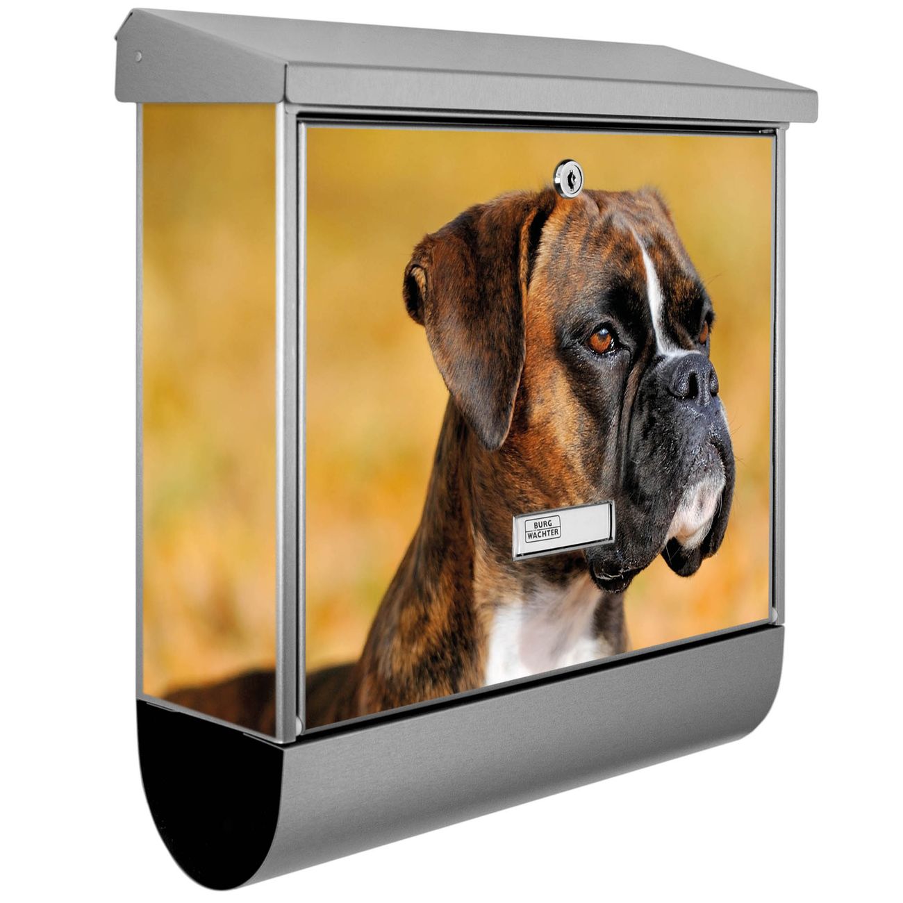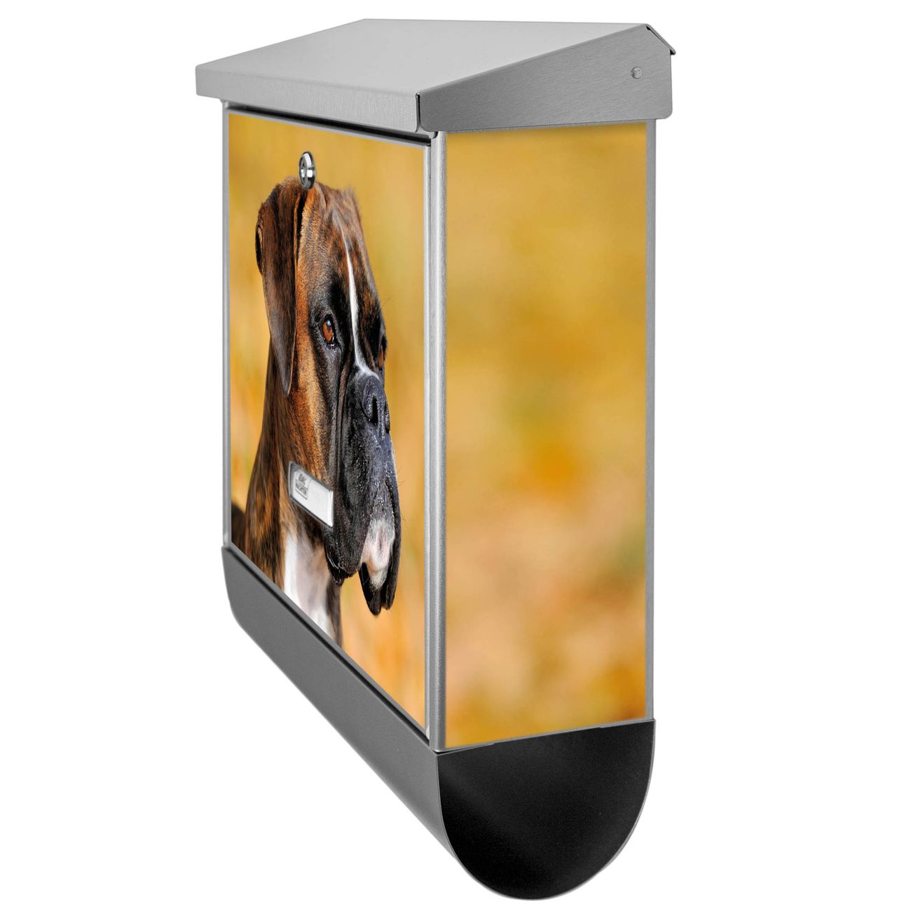 Der Briefkasten besteht aus Edelstahl, einem hochwertigen Material das rostfrei und äußerst unempfindlich gegenüber Witterungseinflüssen ist. Das Motiv besteht aus einer wetter- und UV-festen Folie, die Ihren Briefkasten zusätzlich vor Kratzern schützt. Der Postkasten ist je nach Auswahl 38 x 39 x 12 CM oder 38 x 31,5 x 12 cm (BxHxT) groß. Der Briefeinwurf ist 33,2cm x 3,1cm, Format DIN C4. Der Briefkasten wird mit Montagematerial und zwei Schlüsseln geliefert.