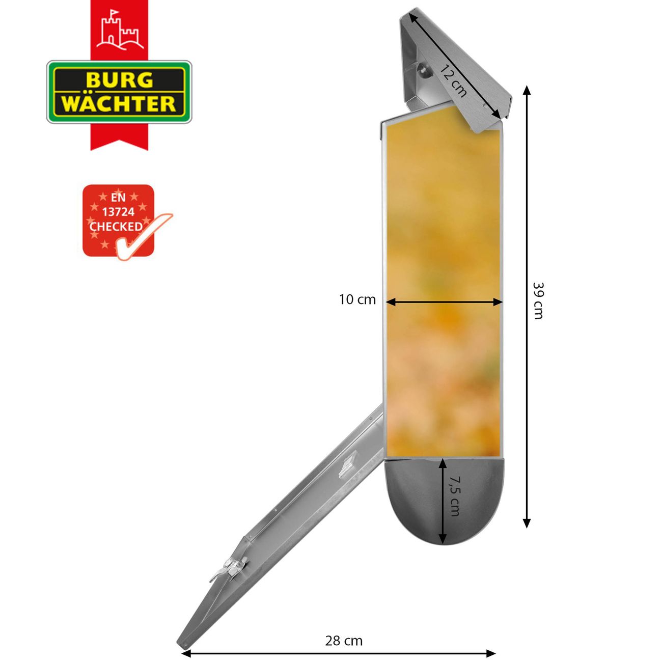 Der BURG-WÄCHTER Edelstahl Briefkasten mit Motiv Wilhelm und Zeitungsrolle bietet Ihnen mit seinem Fassungsvermögen genügend Platz auch für große A4 Sendungen und Zeitschriften. Das integrierte Regendach schützt Ihre Post vor dem Eindringen von Regen.