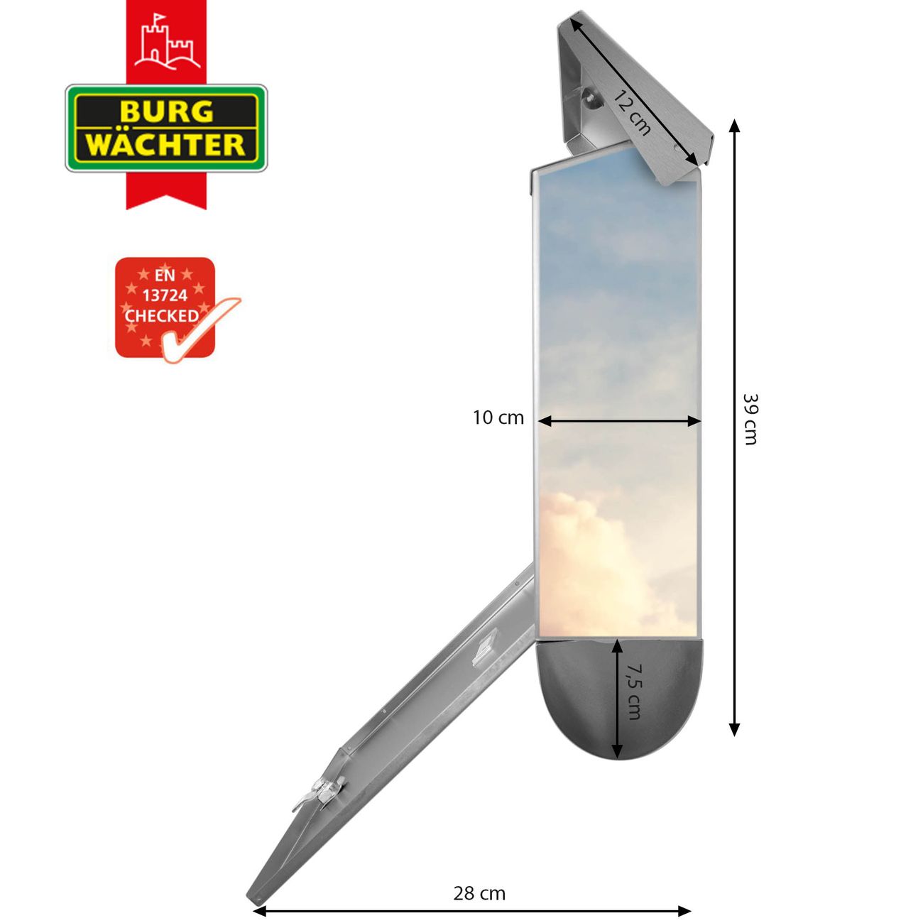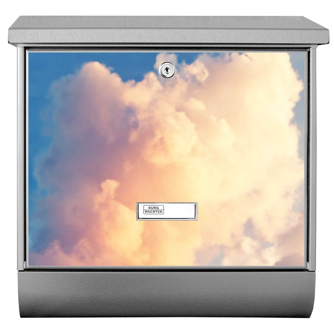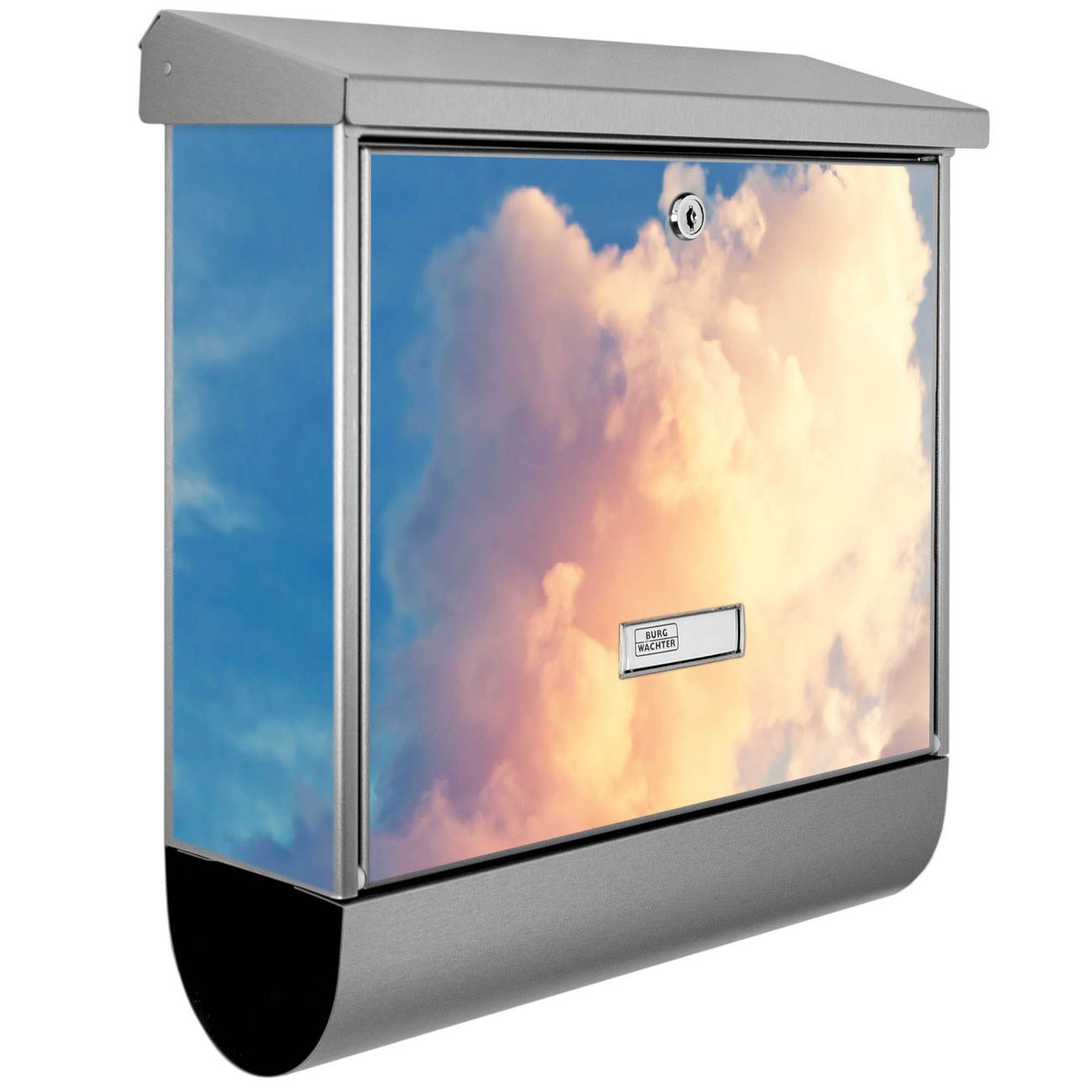 Der BURG-WÄCHTER Edelstahl Briefkasten mit Motiv Wolken 10 und Zeitungsrolle bietet Ihnen mit seinem Fassungsvermögen genügend Platz auch für große A4 Sendungen und Zeitschriften. Das integrierte Regendach schützt Ihre Post vor dem Eindringen von Regen.