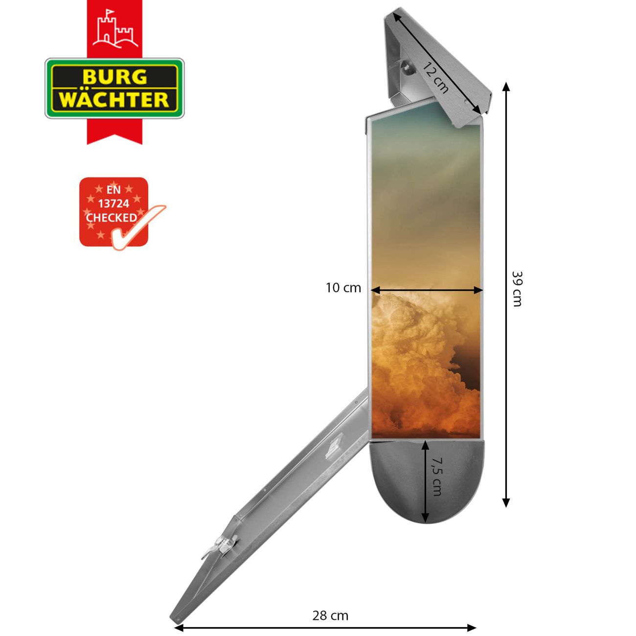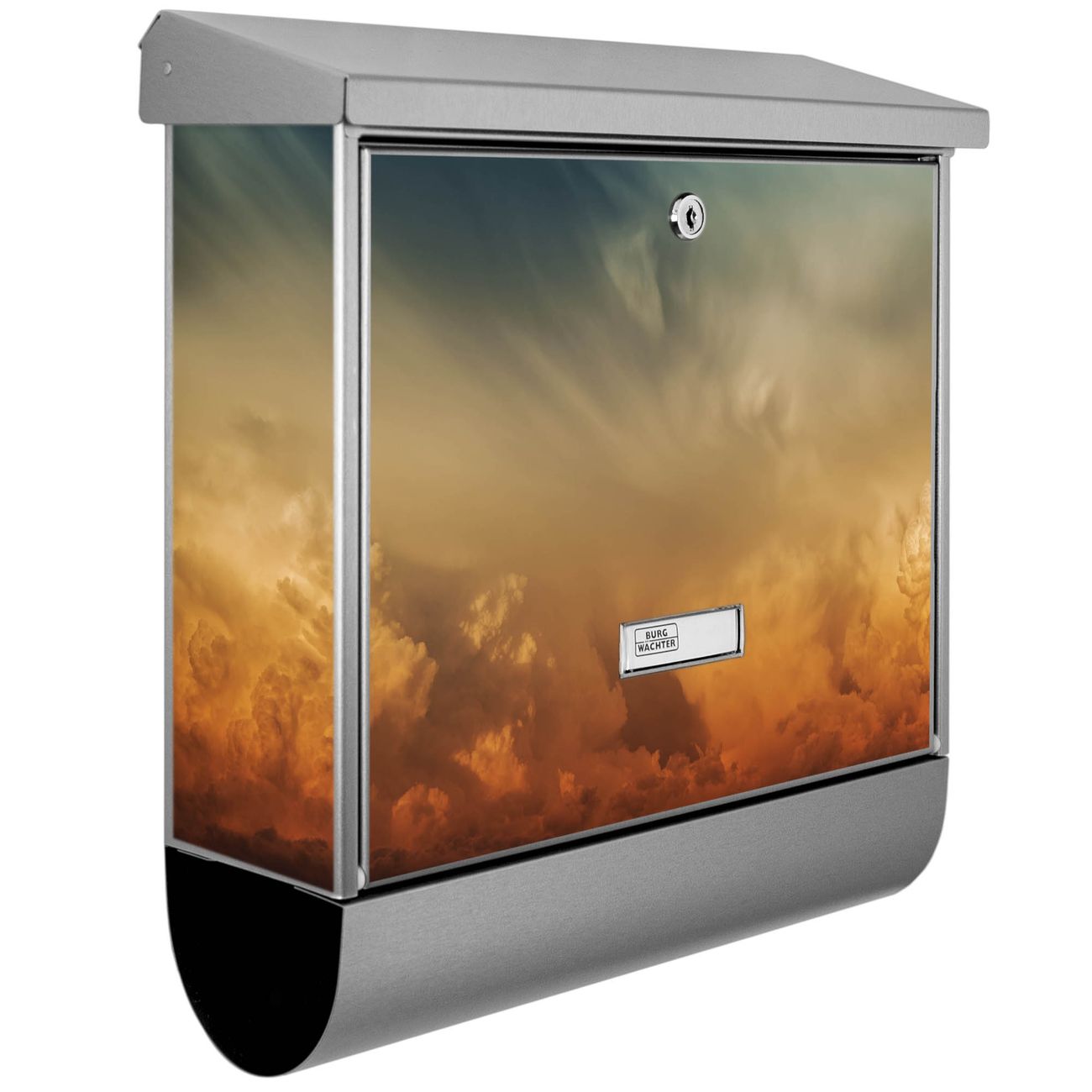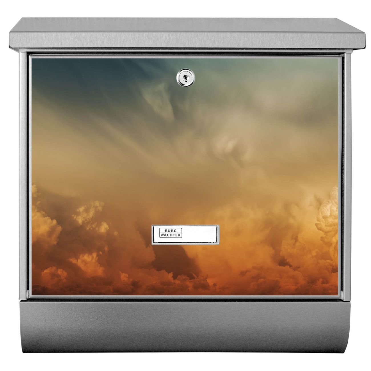 Der BURG-WÄCHTER Edelstahl Briefkasten mit Motiv Wolken in der Dämmerung und Zeitungsrolle bietet Ihnen mit seinem Fassungsvermögen genügend Platz auch für große A4 Sendungen und Zeitschriften. Das integrierte Regendach schützt Ihre Post vor dem Eindringen von Regen.