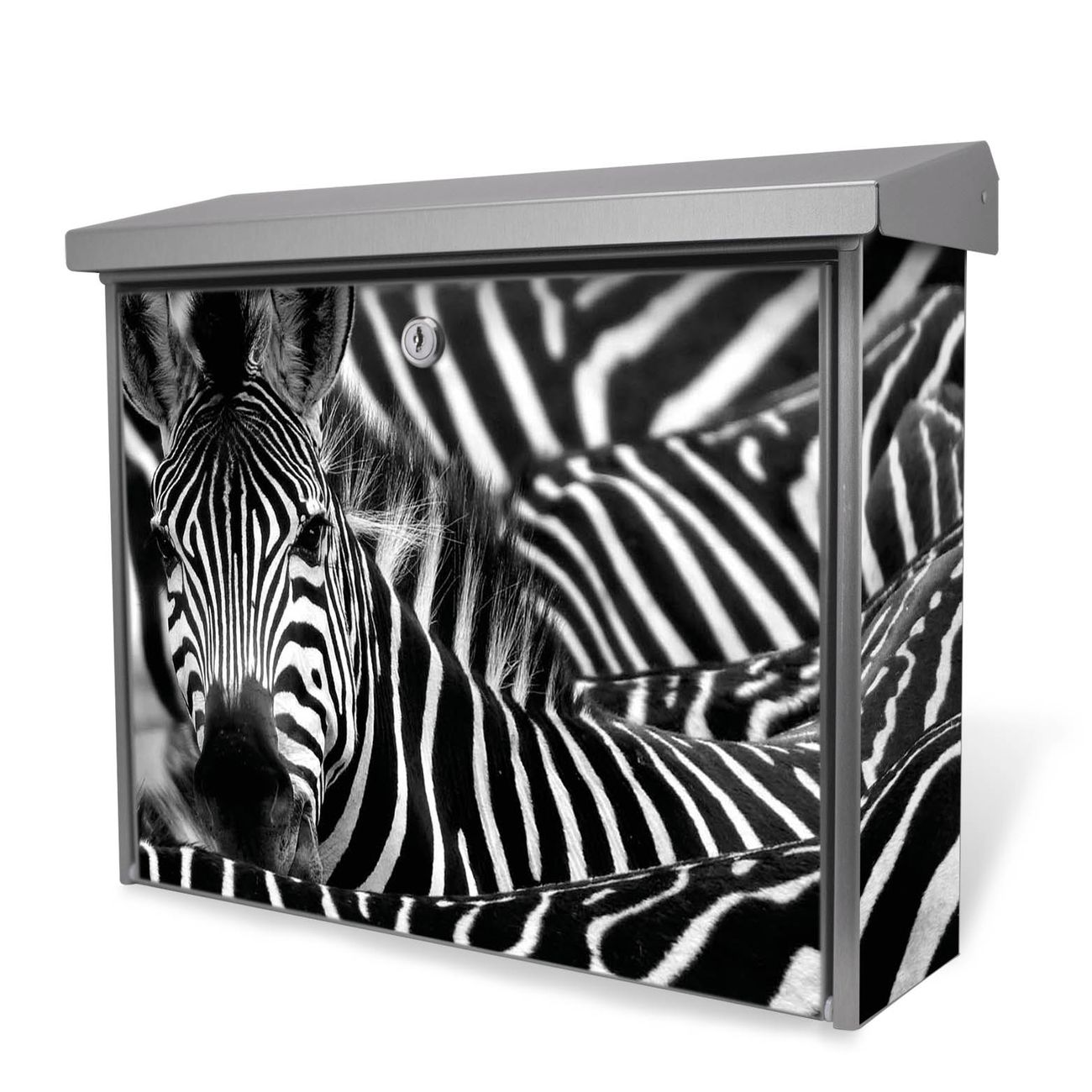 Der Postkasten mit Zebras Motiv hat ein sehr ansprechendes und zeitloses Design. Unsere Motivpalette hält jede Menge Varianten bereit, ob klassisch, modern, verspielt oder witzig - für jeden haben wir das passende Motiv parat. Der Briefkasten ist das Aushängeschild Ihres Hauses.