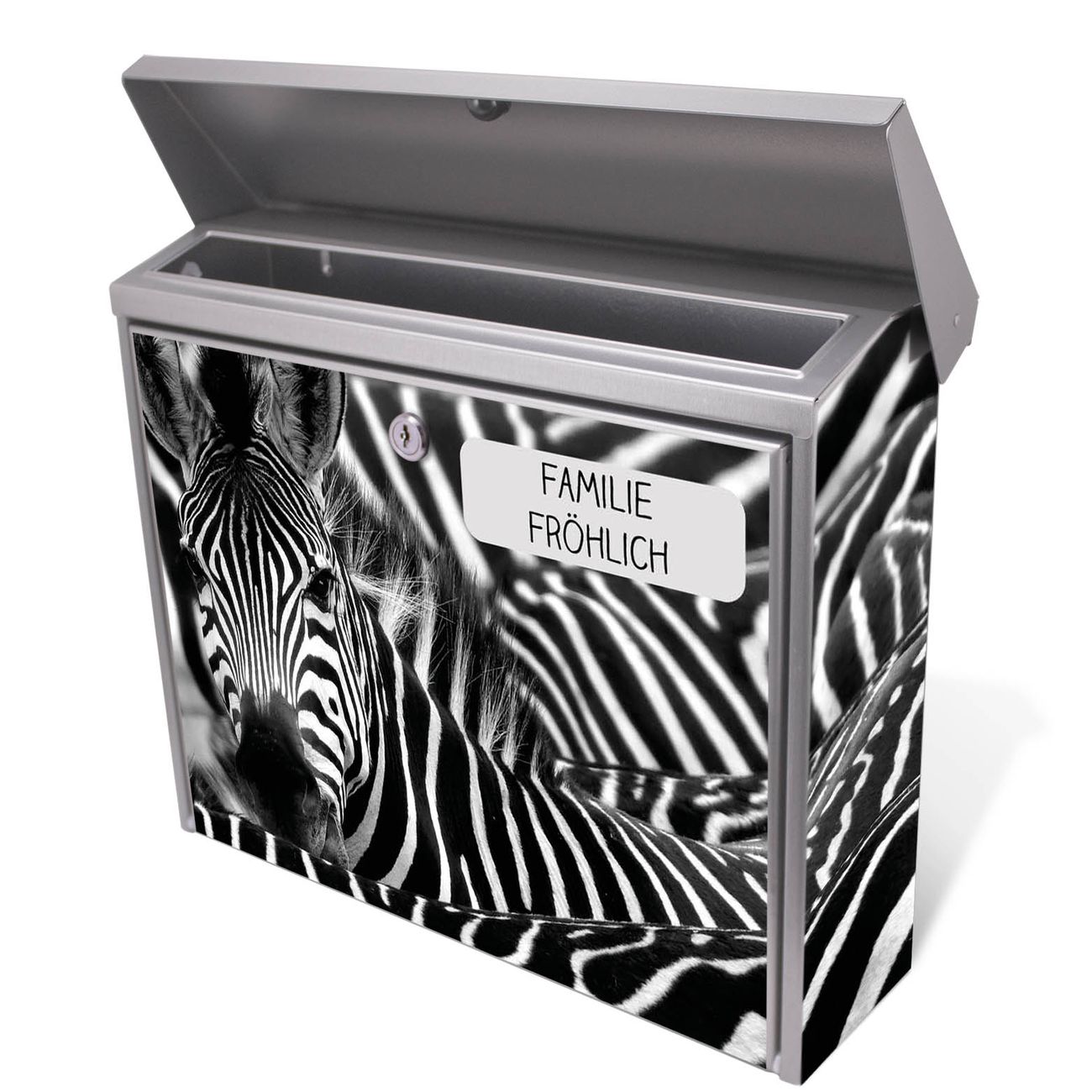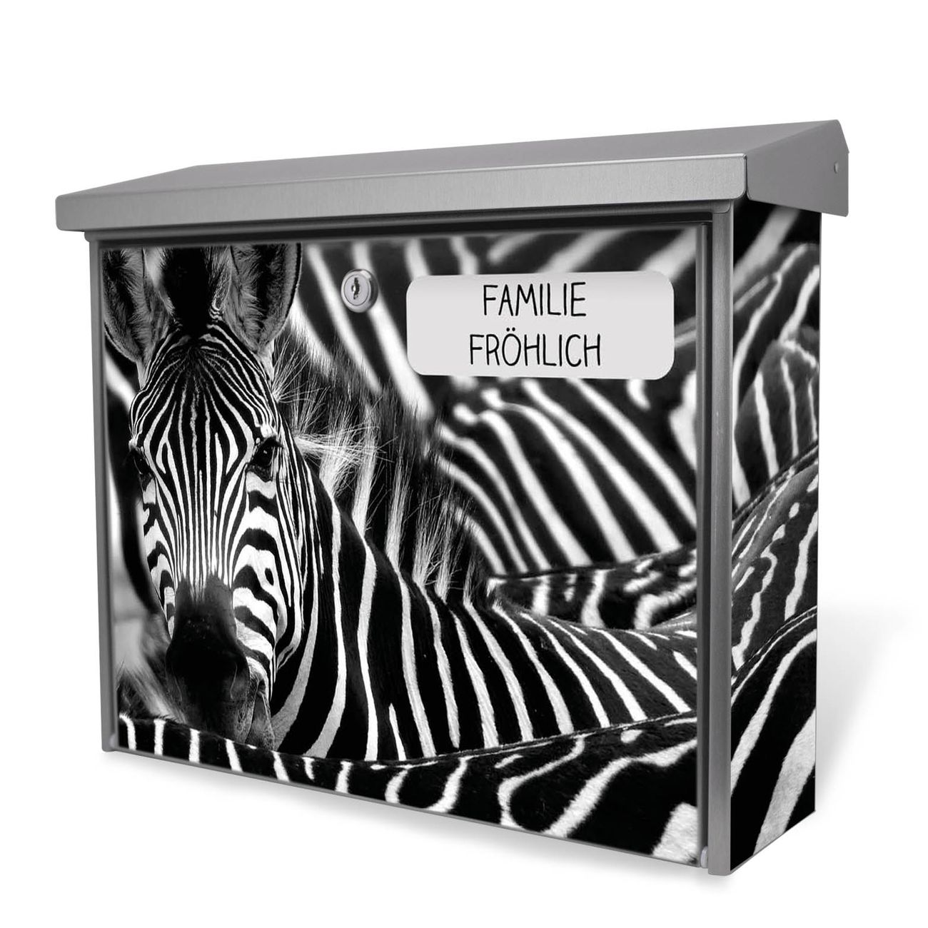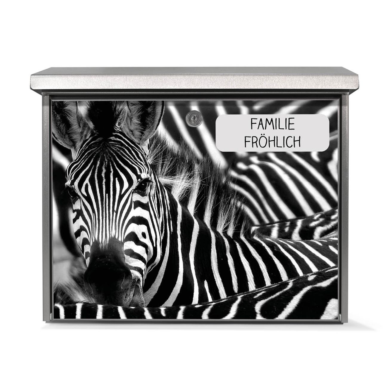 Der Postkasten mit Zebras Motiv hat ein sehr ansprechendes und zeitloses Design. Unsere Motivpalette hält jede Menge Varianten bereit, ob klassisch, modern, verspielt oder witzig - für jeden haben wir das passende Motiv parat. Der Briefkasten ist das Aushängeschild Ihres Hauses.