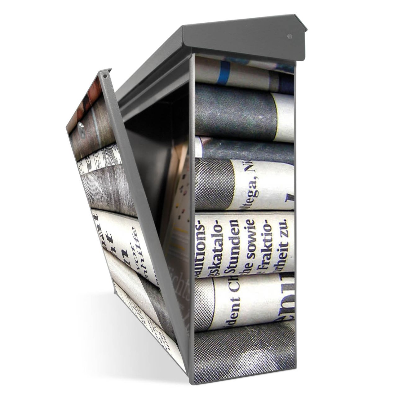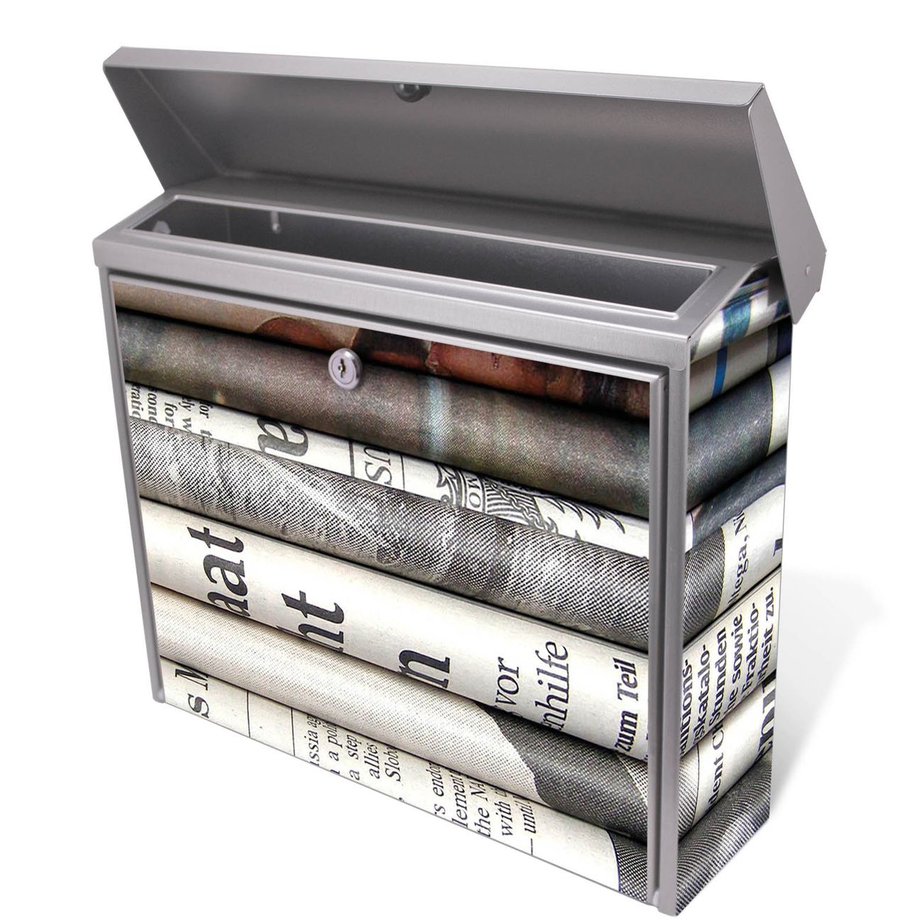 Der Postkasten mit Zeitungen Motiv hat ein sehr ansprechendes und zeitloses Design. Unsere Motivpalette hält jede Menge Varianten bereit, ob klassisch, modern, verspielt oder witzig - für jeden haben wir das passende Motiv parat. Der Briefkasten ist das Aushängeschild Ihres Hauses.