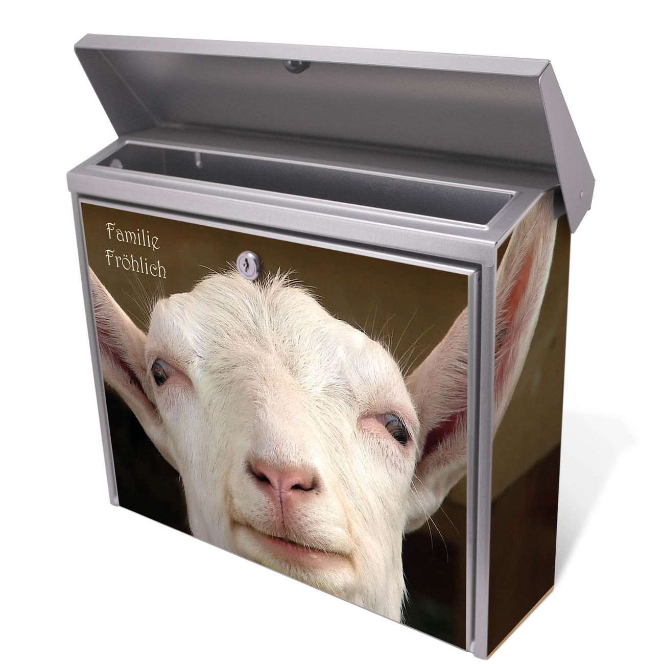 Der Postkasten mit Ziege Motiv hat ein sehr ansprechendes und zeitloses Design. Unsere Motivpalette hält jede Menge Varianten bereit, ob klassisch, modern, verspielt oder witzig - für jeden haben wir das passende Motiv parat. Der Briefkasten ist das Aushängeschild Ihres Hauses.