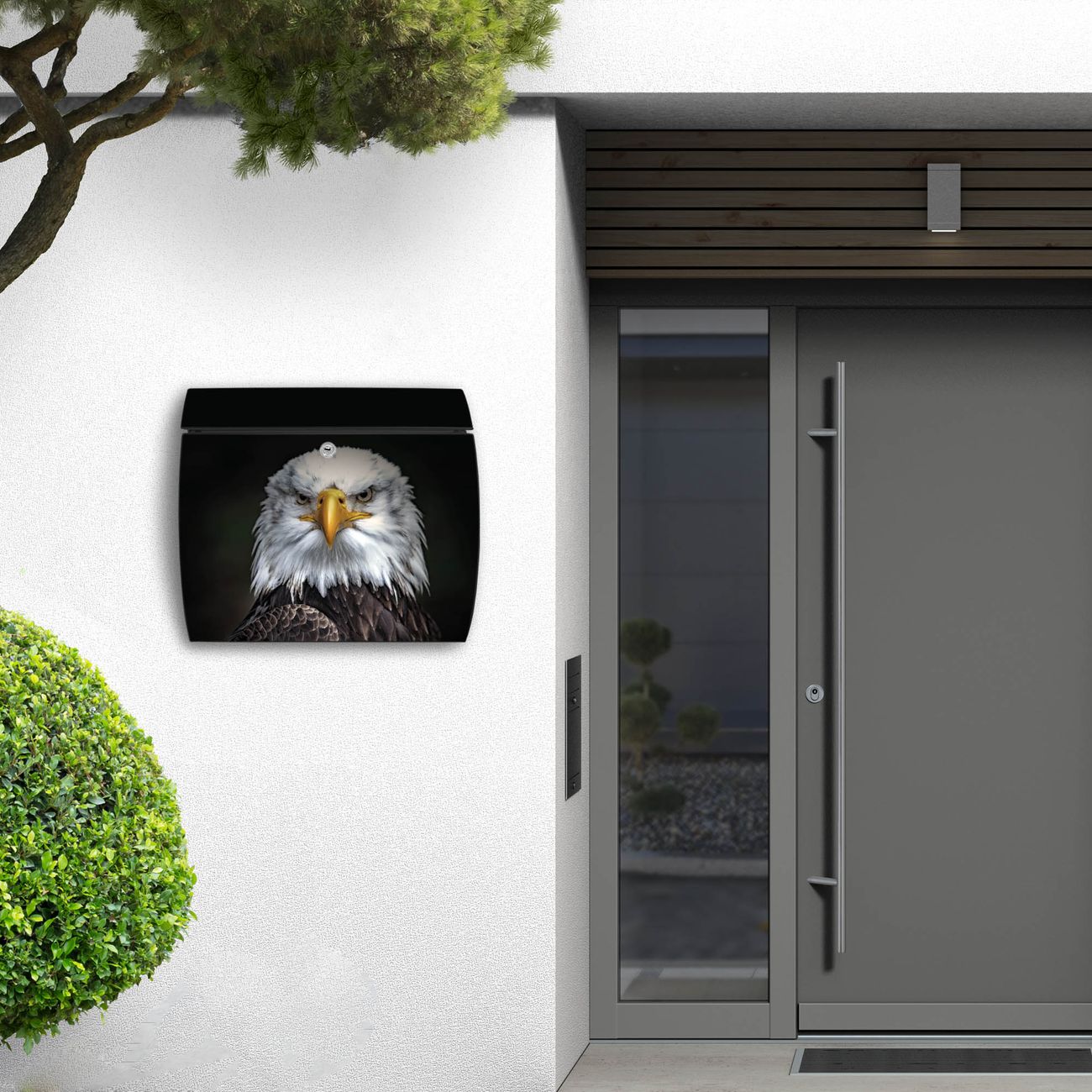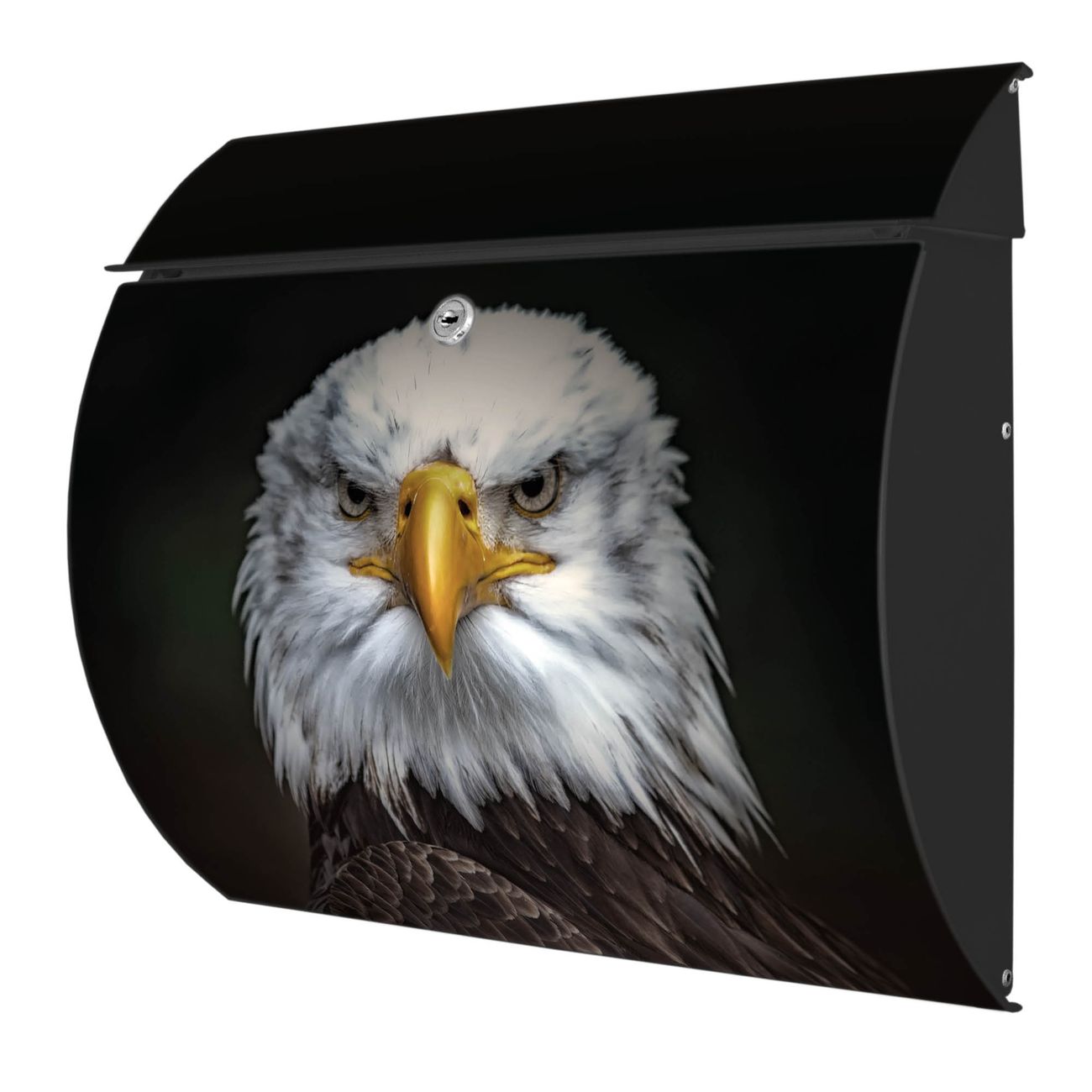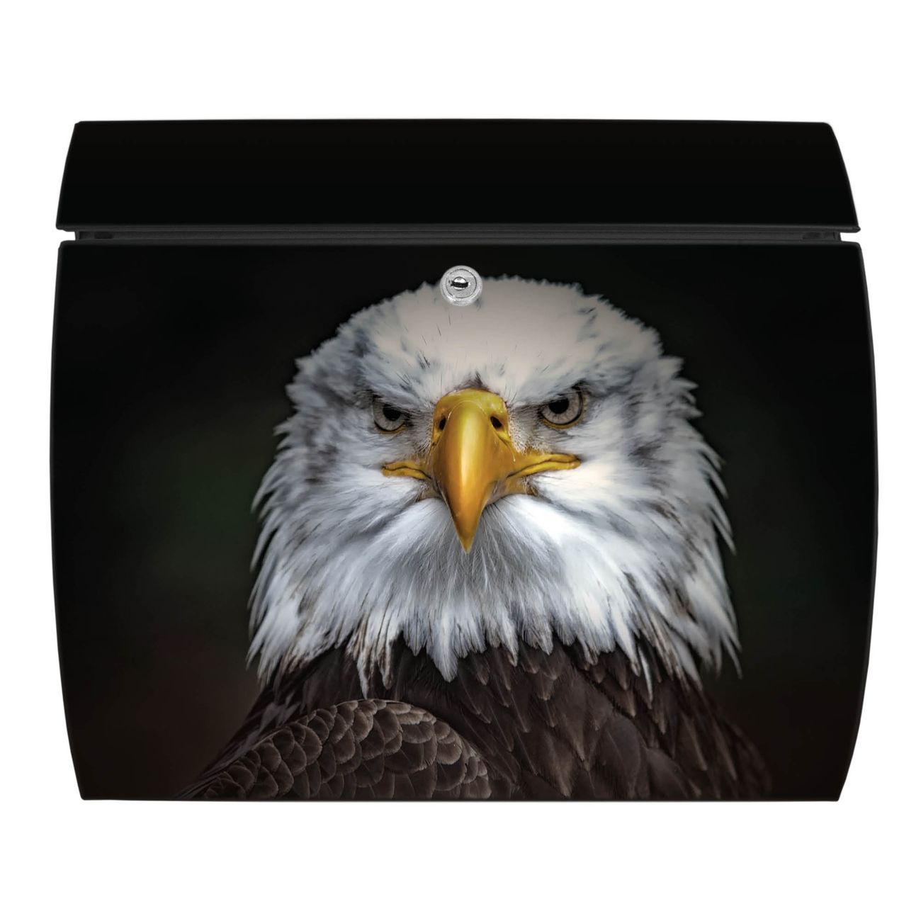 FUNKTION: DESIGN: Das Burg Wächter Modell Toscana mit Motiv Adler hat ein sehr ansprechendes und zeitloses Design und ist besonderes wetterfest. Heben Sie Sich von der tristen grauen Masse ab, ohne auf Funktionalität zu verzichten. Wir bieten Ihnen ebenfalls Namensschilder, bereits beschriftet oder frei zu beschriften, und verschiedene selbst gestaltete Bitte-Keine-Werbung-Aufkleber. DETAILS: Der Postkasten besteht aus vollflächig verzinktem Stahl welcher in Anthrazit oder Weiß lackiert wurde oder aus Edelstahl (je nach gewählter Variante). Das Motiv besteht aus einer wetter- und UV-festen Folie, die mit einem Schutzlaminat überzogen ist, durch die Ihren Briefkasten zusätzlich vor Kratzern geschützt ist und auf den Briefkasten kaschiert wurde. Sie erhalten zu Ihrem neuen Design Briefkasten 2 Schlüssel sowie das passende Montagematerial. BANJADO: Ihr Briefkasten wird von Burg Wächter in Deutschland gefertigt und in unserer kleinen Manufaktur von Hand veredelt. Die Motivfolie ist lösungsmittelfrei und schutzlaminiert, dies sorgt für einen langen Halt. Wir legen großen Wert auf die Verbindung von Funktionalität und Design. Sie erhalten besondere Handarbeit aus Sachsen und Made in Germany.