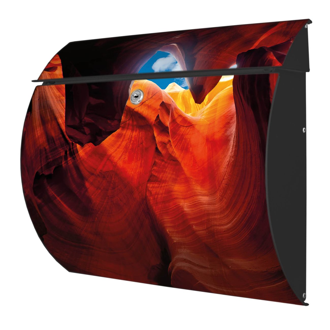 Der geschwungene Burg Wächter Briefkasten Toscana mit Motiv Antelope Canyon 2 bietet Ihnen mit seinem großen Fassungsvermögen genügend Platz auch für große A4 Sendungen. Auf Wunsch können Sie bei uns den passenden Standfuß bestellen und so aus dem Wandbriefkasten einen Standbriefkasten machen. Der integrierte Öffnungsstopp ermöglicht eine einfache Handhabung beim Entnehmen der Post.
