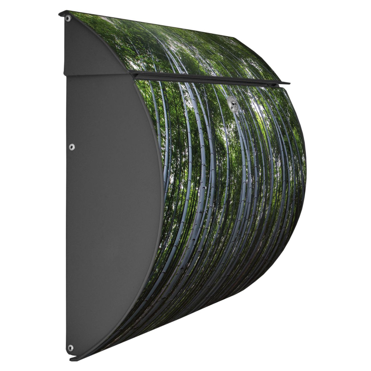 Der geschwungene Burg Wächter Briefkasten Toscana mit Motiv Bambuswald bietet Ihnen mit seinem großen Fassungsvermögen genügend Platz auch für große A4 Sendungen. Auf Wunsch können Sie bei uns den passenden Standfuß bestellen und so aus dem Wandbriefkasten einen Standbriefkasten machen. Der integrierte Öffnungsstopp ermöglicht eine einfache Handhabung beim Entnehmen der Post.