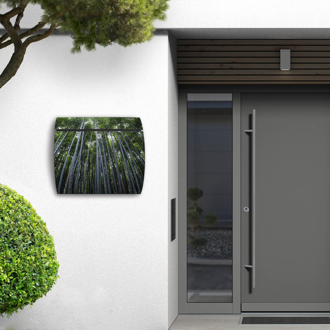 FUNKTION: DESIGN: Das Burg Wächter Modell Toscana mit Motiv Bambuswald hat ein sehr ansprechendes und zeitloses Design und ist besonderes wetterfest. Heben Sie Sich von der tristen grauen Masse ab, ohne auf Funktionalität zu verzichten. Wir bieten Ihnen ebenfalls Namensschilder, bereits beschriftet oder frei zu beschriften, und verschiedene selbst gestaltete Bitte-Keine-Werbung-Aufkleber. DETAILS: Der Postkasten besteht aus vollflächig verzinktem Stahl welcher in Anthrazit oder Weiß lackiert wurde oder aus Edelstahl (je nach gewählter Variante). Das Motiv besteht aus einer wetter- und UV-festen Folie, die mit einem Schutzlaminat überzogen ist, durch die Ihren Briefkasten zusätzlich vor Kratzern geschützt ist und auf den Briefkasten kaschiert wurde. Sie erhalten zu Ihrem neuen Design Briefkasten 2 Schlüssel sowie das passende Montagematerial. BANJADO: Ihr Briefkasten wird von Burg Wächter in Deutschland gefertigt und in unserer kleinen Manufaktur von Hand veredelt. Die Motivfolie ist lösungsmittelfrei und schutzlaminiert, dies sorgt für einen langen Halt. Wir legen großen Wert auf die Verbindung von Funktionalität und Design. Sie erhalten besondere Handarbeit aus Sachsen und Made in Germany.