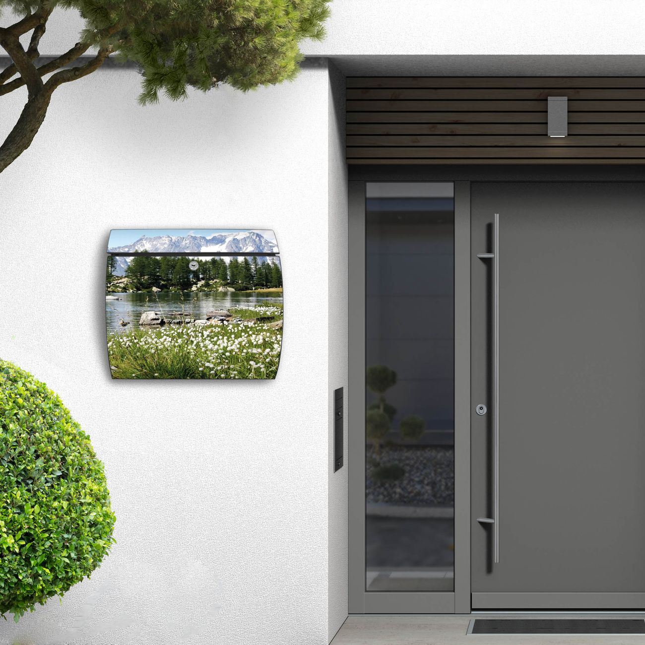 FUNKTION: DESIGN: Das Burg Wächter Modell Toscana mit Motiv Bergidylle hat ein sehr ansprechendes und zeitloses Design und ist besonderes wetterfest. Heben Sie Sich von der tristen grauen Masse ab, ohne auf Funktionalität zu verzichten. Wir bieten Ihnen ebenfalls Namensschilder, bereits beschriftet oder frei zu beschriften, und verschiedene selbst gestaltete Bitte-Keine-Werbung-Aufkleber. DETAILS: Der Postkasten besteht aus vollflächig verzinktem Stahl welcher in Anthrazit oder Weiß lackiert wurde oder aus Edelstahl (je nach gewählter Variante). Das Motiv besteht aus einer wetter- und UV-festen Folie, die mit einem Schutzlaminat überzogen ist, durch die Ihren Briefkasten zusätzlich vor Kratzern geschützt ist und auf den Briefkasten kaschiert wurde. Sie erhalten zu Ihrem neuen Design Briefkasten 2 Schlüssel sowie das passende Montagematerial. BANJADO: Ihr Briefkasten wird von Burg Wächter in Deutschland gefertigt und in unserer kleinen Manufaktur von Hand veredelt. Die Motivfolie ist lösungsmittelfrei und schutzlaminiert, dies sorgt für einen langen Halt. Wir legen großen Wert auf die Verbindung von Funktionalität und Design. Sie erhalten besondere Handarbeit aus Sachsen und Made in Germany.