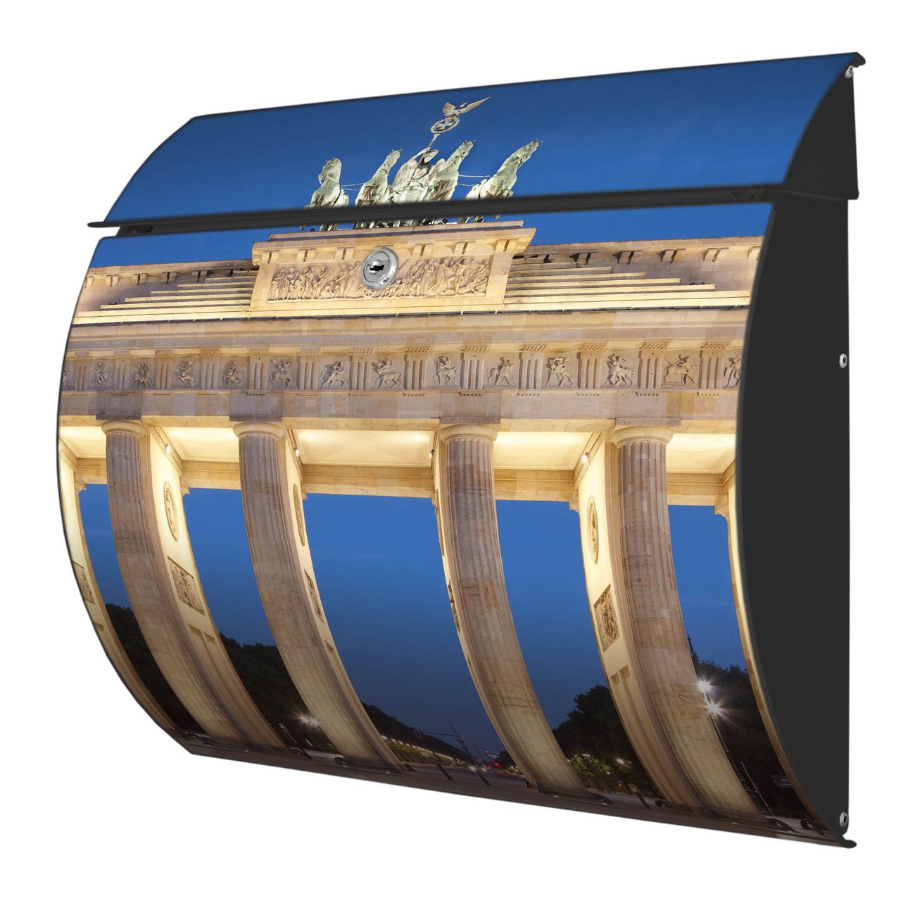 FUNKTION: DESIGN: Das Burg Wächter Modell Toscana mit Motiv Brandenburger Tor 2 hat ein sehr ansprechendes und zeitloses Design und ist besonderes wetterfest. Heben Sie Sich von der tristen grauen Masse ab, ohne auf Funktionalität zu verzichten. Wir bieten Ihnen ebenfalls Namensschilder, bereits beschriftet oder frei zu beschriften, und verschiedene selbst gestaltete Bitte-Keine-Werbung-Aufkleber. DETAILS: Der Postkasten besteht aus vollflächig verzinktem Stahl welcher in Anthrazit oder Weiß lackiert wurde oder aus Edelstahl (je nach gewählter Variante). Das Motiv besteht aus einer wetter- und UV-festen Folie, die mit einem Schutzlaminat überzogen ist, durch die Ihren Briefkasten zusätzlich vor Kratzern geschützt ist und auf den Briefkasten kaschiert wurde. Sie erhalten zu Ihrem neuen Design Briefkasten 2 Schlüssel sowie das passende Montagematerial. BANJADO: Ihr Briefkasten wird von Burg Wächter in Deutschland gefertigt und in unserer kleinen Manufaktur von Hand veredelt. Die Motivfolie ist lösungsmittelfrei und schutzlaminiert, dies sorgt für einen langen Halt. Wir legen großen Wert auf die Verbindung von Funktionalität und Design. Sie erhalten besondere Handarbeit aus Sachsen und Made in Germany.