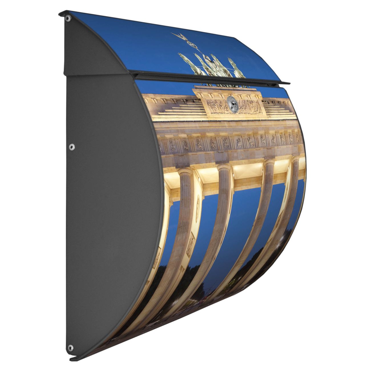 Der geschwungene Burg Wächter Briefkasten Toscana mit Motiv Brandenburger Tor 2 bietet Ihnen mit seinem großen Fassungsvermögen genügend Platz auch für große A4 Sendungen. Auf Wunsch können Sie bei uns den passenden Standfuß bestellen und so aus dem Wandbriefkasten einen Standbriefkasten machen. Der integrierte Öffnungsstopp ermöglicht eine einfache Handhabung beim Entnehmen der Post.