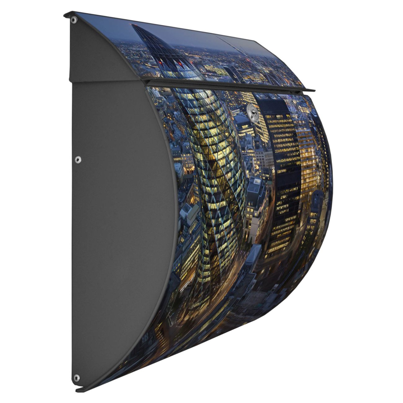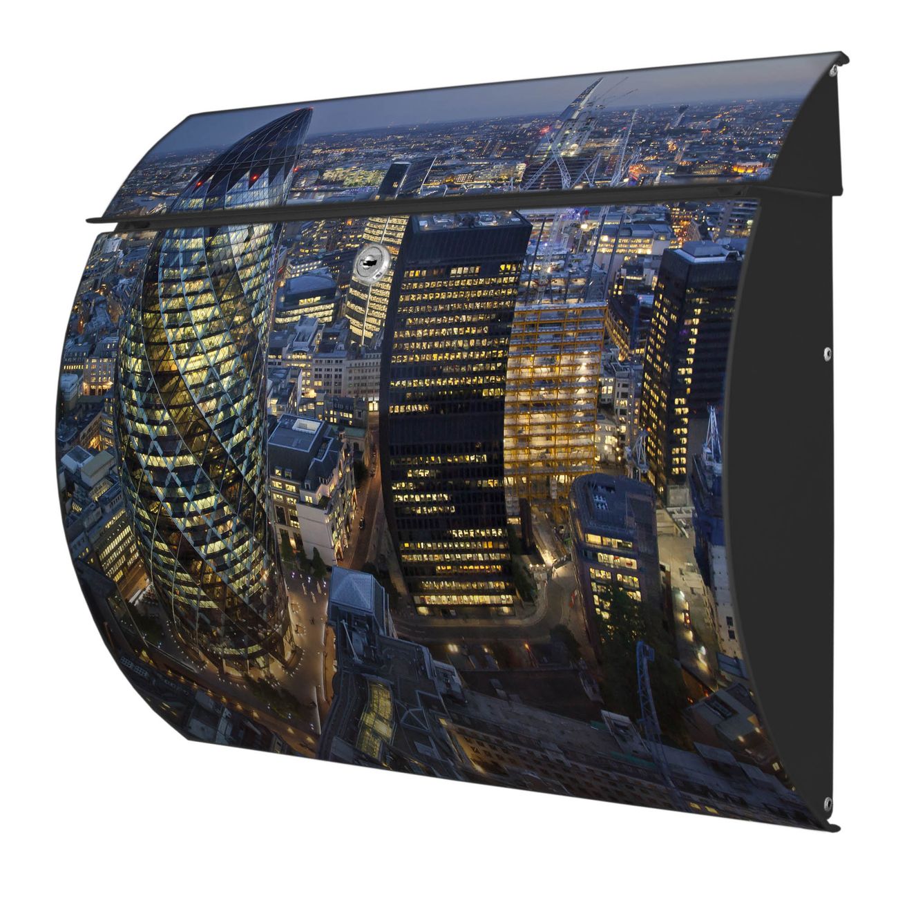 Der geschwungene Burg Wächter Briefkasten Toscana mit Motiv City Of London bietet Ihnen mit seinem großen Fassungsvermögen genügend Platz auch für große A4 Sendungen. Auf Wunsch können Sie bei uns den passenden Standfuß bestellen und so aus dem Wandbriefkasten einen Standbriefkasten machen. Der integrierte Öffnungsstopp ermöglicht eine einfache Handhabung beim Entnehmen der Post.