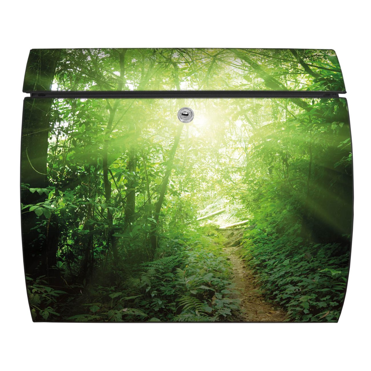 Der geschwungene Burg Wächter Briefkasten Toscana mit Motiv Dschungel Malaysia bietet Ihnen mit seinem großen Fassungsvermögen genügend Platz auch für große A4 Sendungen. Auf Wunsch können Sie bei uns den passenden Standfuß bestellen und so aus dem Wandbriefkasten einen Standbriefkasten machen. Der integrierte Öffnungsstopp ermöglicht eine einfache Handhabung beim Entnehmen der Post.