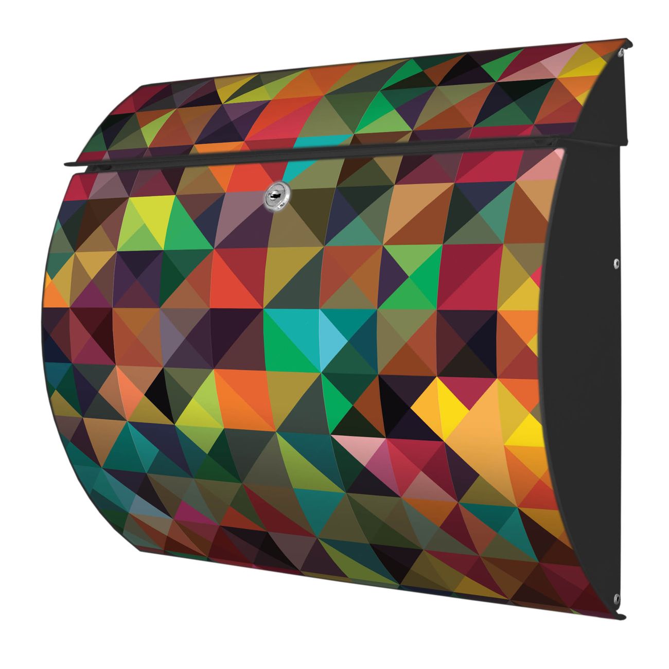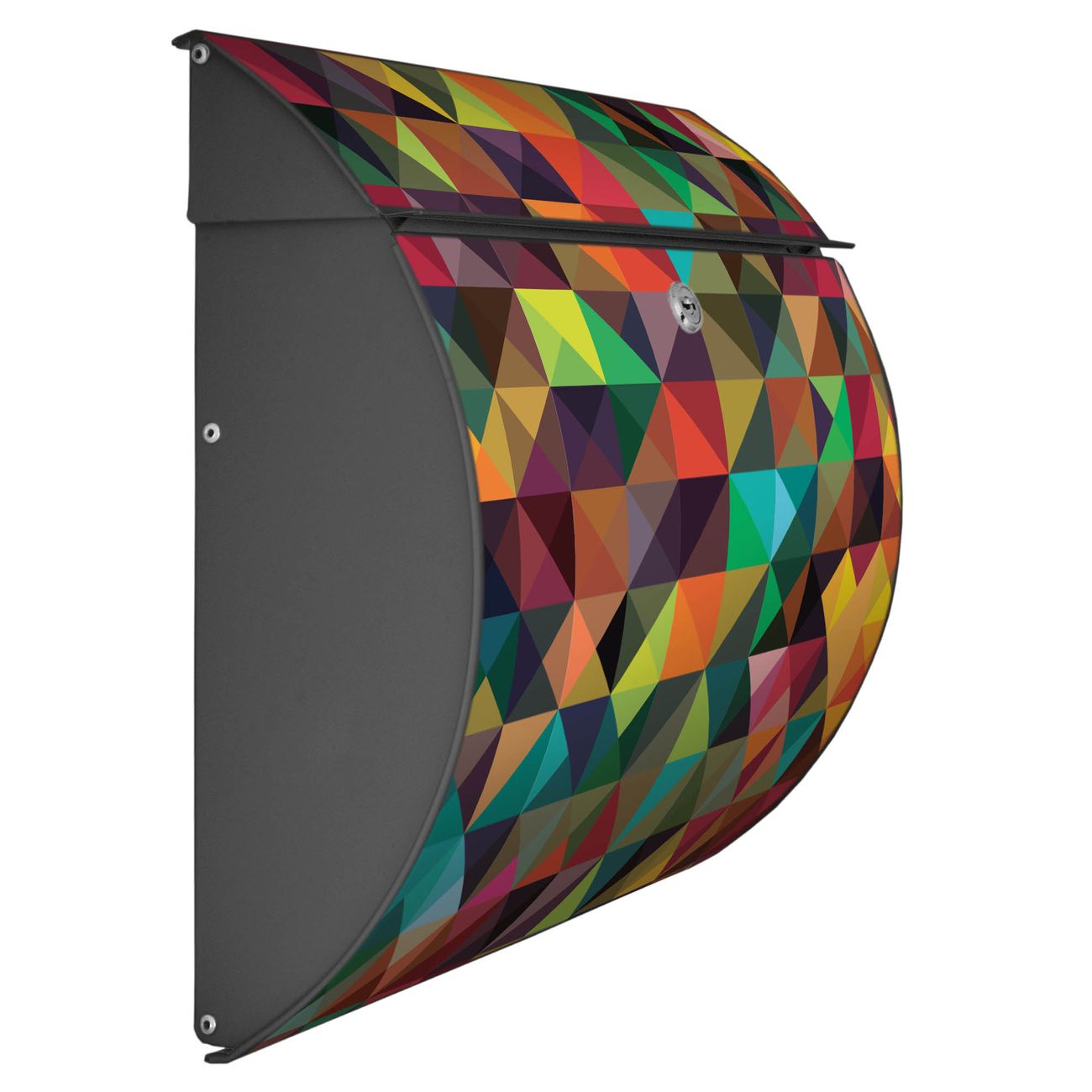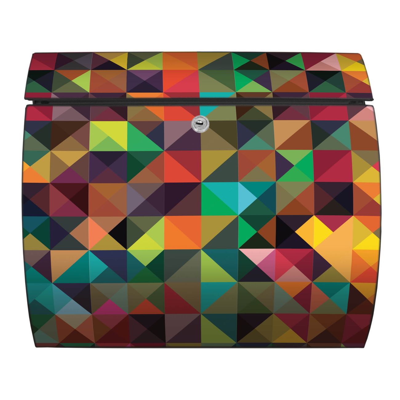 FUNKTION: DESIGN: Das Burg Wächter Modell Toscana mit Motiv Dunkles Kaleidoskop hat ein sehr ansprechendes und zeitloses Design und ist besonderes wetterfest. Heben Sie Sich von der tristen grauen Masse ab, ohne auf Funktionalität zu verzichten. Wir bieten Ihnen ebenfalls Namensschilder, bereits beschriftet oder frei zu beschriften, und verschiedene selbst gestaltete Bitte-Keine-Werbung-Aufkleber. DETAILS: Der Postkasten besteht aus vollflächig verzinktem Stahl welcher in Anthrazit oder Weiß lackiert wurde oder aus Edelstahl (je nach gewählter Variante). Das Motiv besteht aus einer wetter- und UV-festen Folie, die mit einem Schutzlaminat überzogen ist, durch die Ihren Briefkasten zusätzlich vor Kratzern geschützt ist und auf den Briefkasten kaschiert wurde. Sie erhalten zu Ihrem neuen Design Briefkasten 2 Schlüssel sowie das passende Montagematerial. BANJADO: Ihr Briefkasten wird von Burg Wächter in Deutschland gefertigt und in unserer kleinen Manufaktur von Hand veredelt. Die Motivfolie ist lösungsmittelfrei und schutzlaminiert, dies sorgt für einen langen Halt. Wir legen großen Wert auf die Verbindung von Funktionalität und Design. Sie erhalten besondere Handarbeit aus Sachsen und Made in Germany.