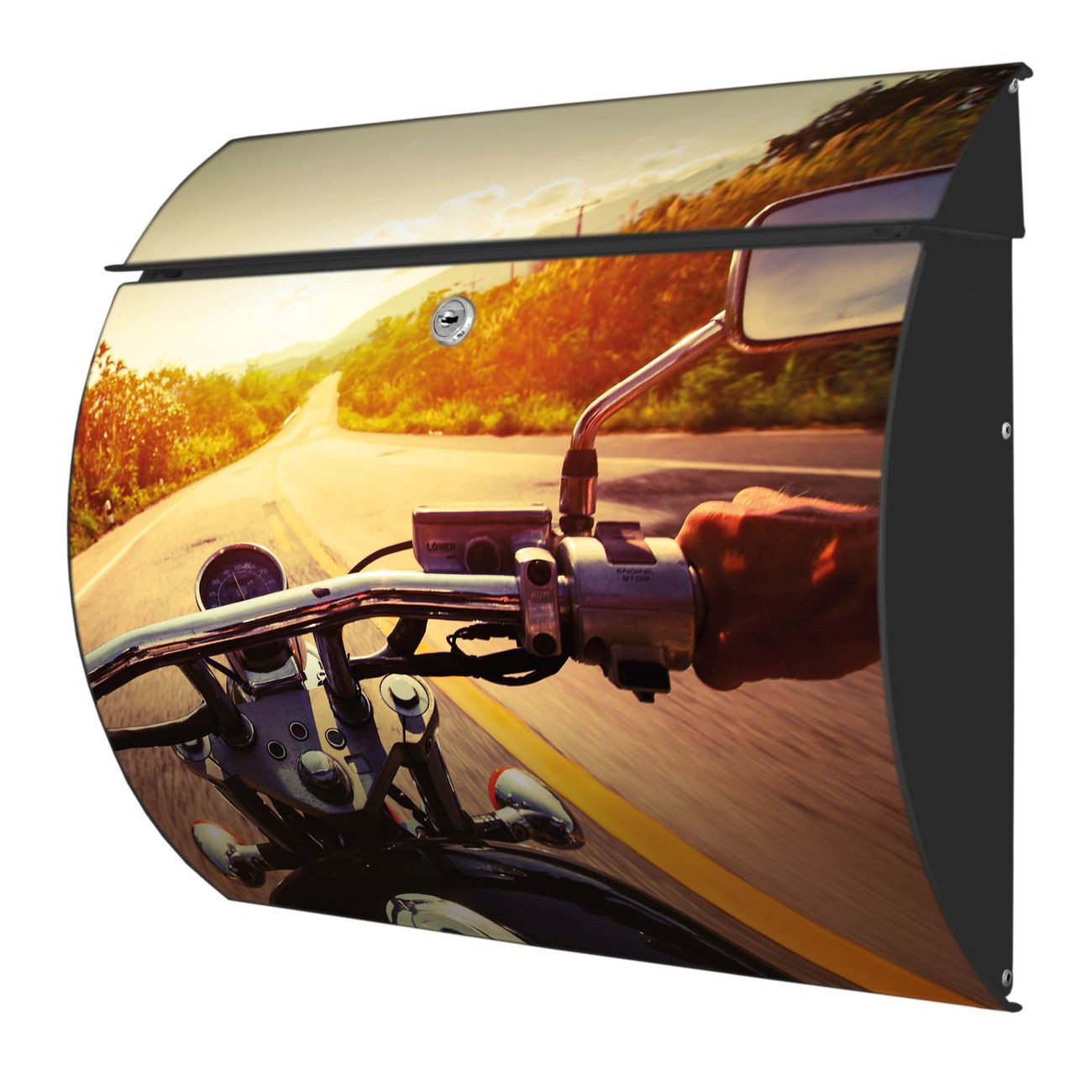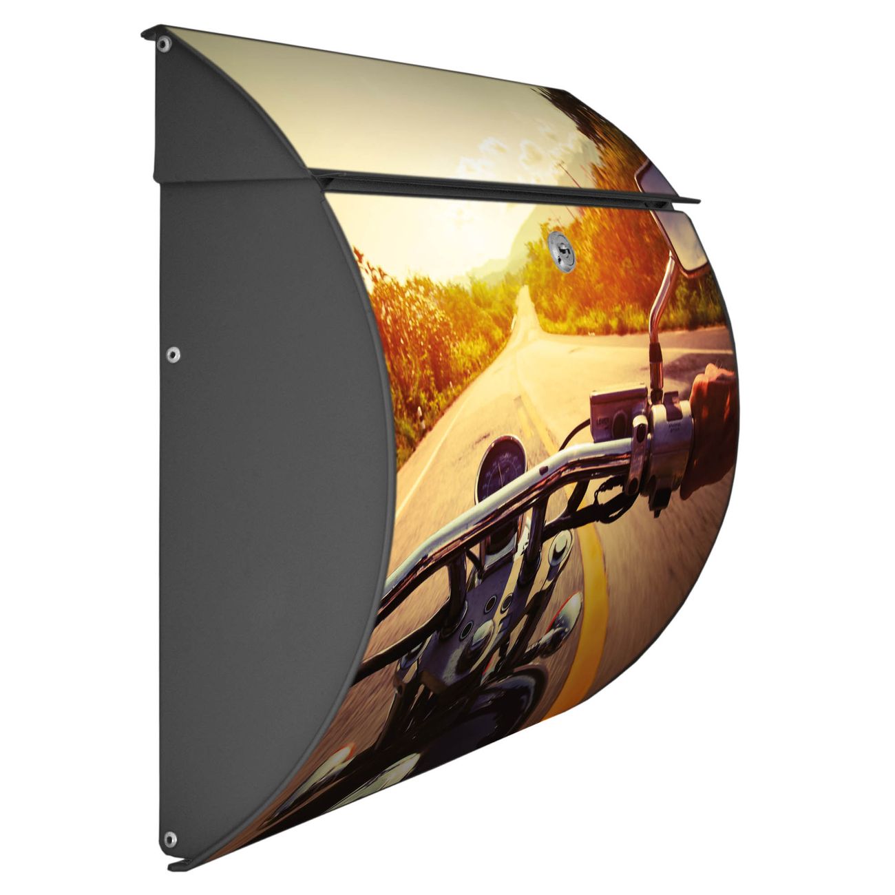 FUNKTION: DESIGN: Das Burg Wächter Modell Toscana mit Motiv Easy Rider hat ein sehr ansprechendes und zeitloses Design und ist besonderes wetterfest. Heben Sie Sich von der tristen grauen Masse ab, ohne auf Funktionalität zu verzichten. Wir bieten Ihnen ebenfalls Namensschilder, bereits beschriftet oder frei zu beschriften, und verschiedene selbst gestaltete Bitte-Keine-Werbung-Aufkleber. DETAILS: Der Postkasten besteht aus vollflächig verzinktem Stahl welcher in Anthrazit oder Weiß lackiert wurde oder aus Edelstahl (je nach gewählter Variante). Das Motiv besteht aus einer wetter- und UV-festen Folie, die mit einem Schutzlaminat überzogen ist, durch die Ihren Briefkasten zusätzlich vor Kratzern geschützt ist und auf den Briefkasten kaschiert wurde. Sie erhalten zu Ihrem neuen Design Briefkasten 2 Schlüssel sowie das passende Montagematerial. BANJADO: Ihr Briefkasten wird von Burg Wächter in Deutschland gefertigt und in unserer kleinen Manufaktur von Hand veredelt. Die Motivfolie ist lösungsmittelfrei und schutzlaminiert, dies sorgt für einen langen Halt. Wir legen großen Wert auf die Verbindung von Funktionalität und Design. Sie erhalten besondere Handarbeit aus Sachsen und Made in Germany.