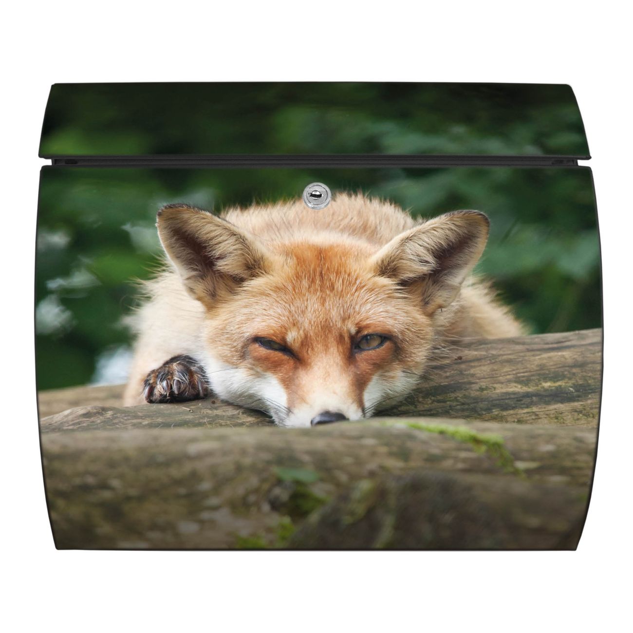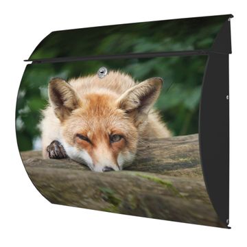Der geschwungene Burg Wächter Briefkasten Toscana mit Motiv Fuchs Relax bietet Ihnen mit seinem großen Fassungsvermögen genügend Platz auch für große A4 Sendungen. Auf Wunsch können Sie bei uns den passenden Standfuß bestellen und so aus dem Wandbriefkasten einen Standbriefkasten machen. Der integrierte Öffnungsstopp ermöglicht eine einfache Handhabung beim Entnehmen der Post.