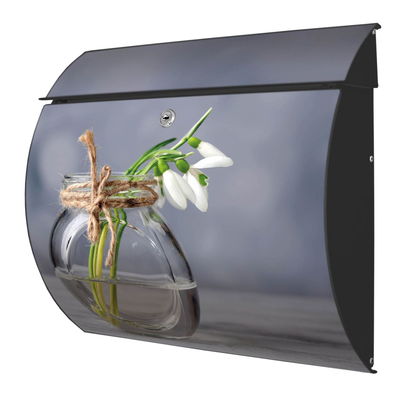 FUNKTION: DESIGN: Das Burg Wächter Modell Toscana mit Motiv Gänseblümchen im Glas hat ein sehr ansprechendes und zeitloses Design und ist besonderes wetterfest. Heben Sie Sich von der tristen grauen Masse ab, ohne auf Funktionalität zu verzichten. Wir bieten Ihnen ebenfalls Namensschilder, bereits beschriftet oder frei zu beschriften, und verschiedene selbst gestaltete Bitte-Keine-Werbung-Aufkleber. DETAILS: Der Postkasten besteht aus vollflächig verzinktem Stahl welcher in Anthrazit oder Weiß lackiert wurde oder aus Edelstahl (je nach gewählter Variante). Das Motiv besteht aus einer wetter- und UV-festen Folie, die mit einem Schutzlaminat überzogen ist, durch die Ihren Briefkasten zusätzlich vor Kratzern geschützt ist und auf den Briefkasten kaschiert wurde. Sie erhalten zu Ihrem neuen Design Briefkasten 2 Schlüssel sowie das passende Montagematerial. BANJADO: Ihr Briefkasten wird von Burg Wächter in Deutschland gefertigt und in unserer kleinen Manufaktur von Hand veredelt. Die Motivfolie ist lösungsmittelfrei und schutzlaminiert, dies sorgt für einen langen Halt. Wir legen großen Wert auf die Verbindung von Funktionalität und Design. Sie erhalten besondere Handarbeit aus Sachsen und Made in Germany.