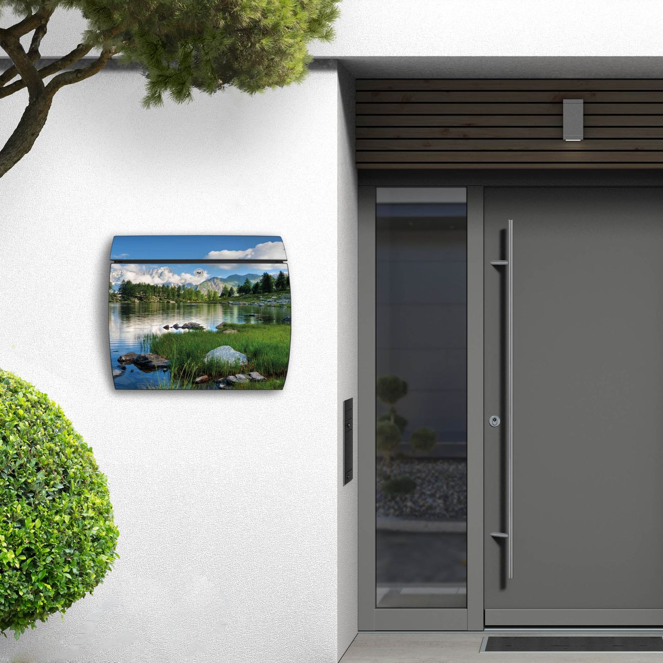 FUNKTION: DESIGN: Das Burg Wächter Modell Toscana mit Motiv Gebirgssee hat ein sehr ansprechendes und zeitloses Design und ist besonderes wetterfest. Heben Sie Sich von der tristen grauen Masse ab, ohne auf Funktionalität zu verzichten. Wir bieten Ihnen ebenfalls Namensschilder, bereits beschriftet oder frei zu beschriften, und verschiedene selbst gestaltete Bitte-Keine-Werbung-Aufkleber. DETAILS: Der Postkasten besteht aus vollflächig verzinktem Stahl welcher in Anthrazit oder Weiß lackiert wurde oder aus Edelstahl (je nach gewählter Variante). Das Motiv besteht aus einer wetter- und UV-festen Folie, die mit einem Schutzlaminat überzogen ist, durch die Ihren Briefkasten zusätzlich vor Kratzern geschützt ist und auf den Briefkasten kaschiert wurde. Sie erhalten zu Ihrem neuen Design Briefkasten 2 Schlüssel sowie das passende Montagematerial. BANJADO: Ihr Briefkasten wird von Burg Wächter in Deutschland gefertigt und in unserer kleinen Manufaktur von Hand veredelt. Die Motivfolie ist lösungsmittelfrei und schutzlaminiert, dies sorgt für einen langen Halt. Wir legen großen Wert auf die Verbindung von Funktionalität und Design. Sie erhalten besondere Handarbeit aus Sachsen und Made in Germany.