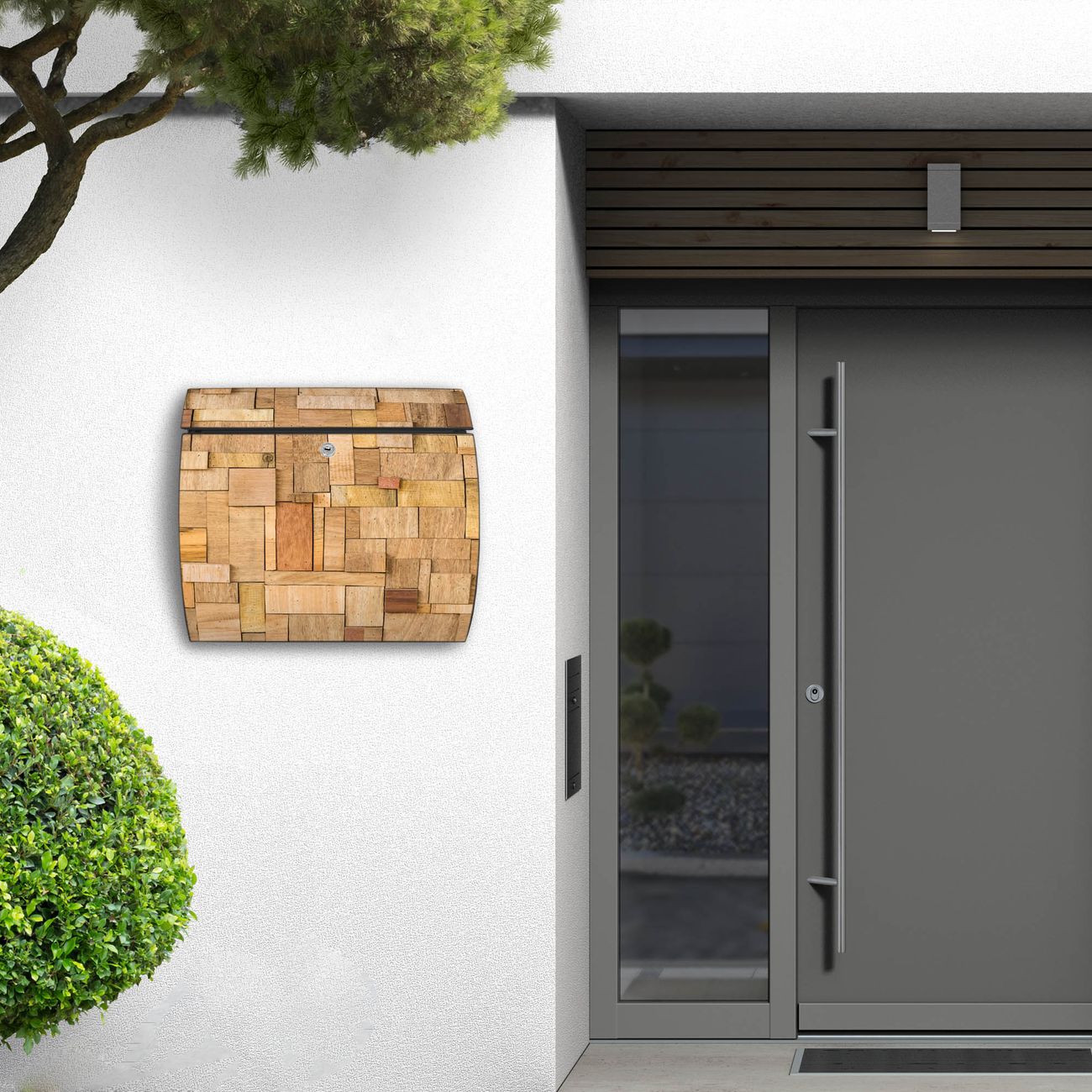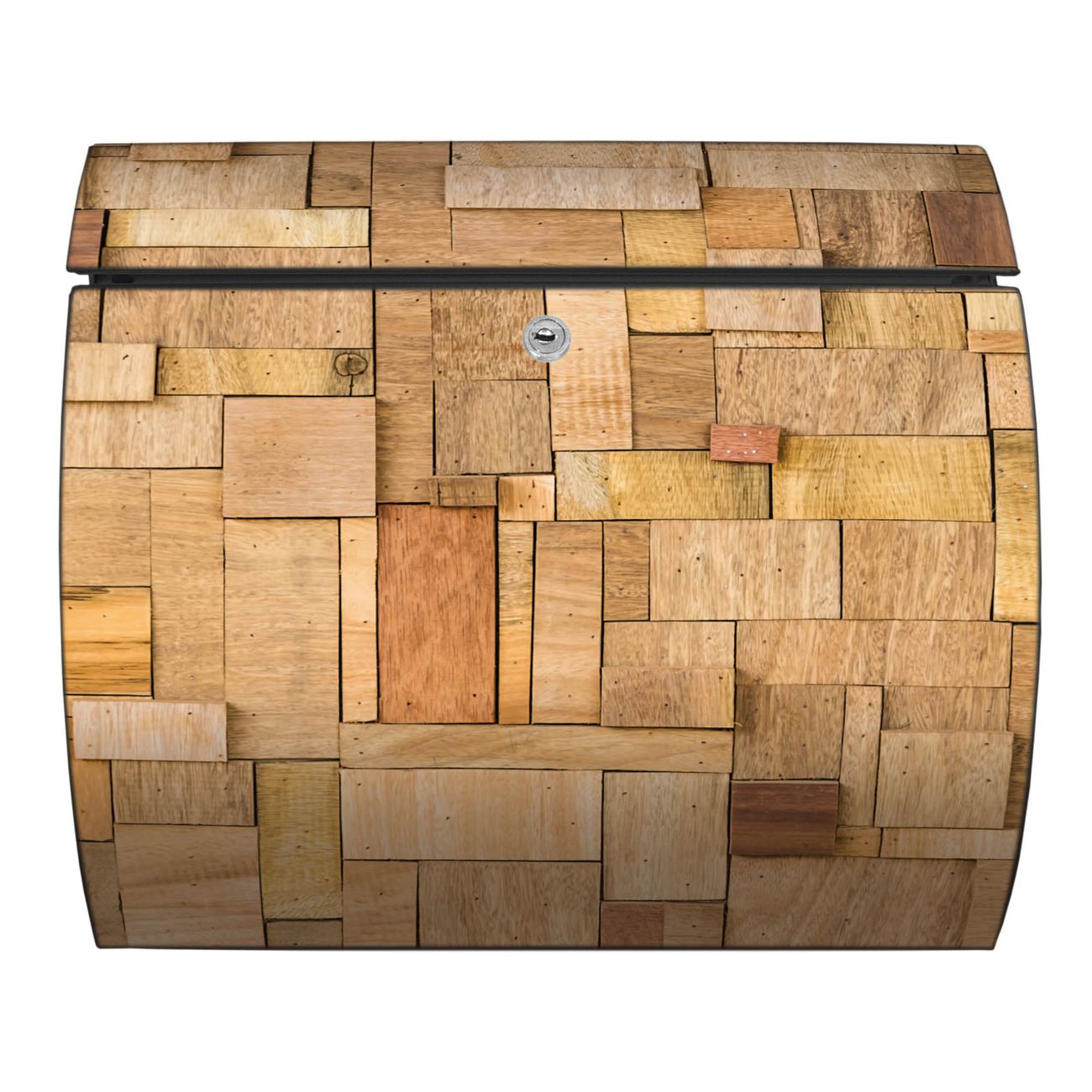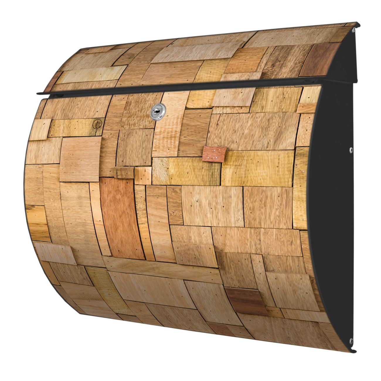 FUNKTION: DESIGN: Das Burg Wächter Modell Toscana mit Motiv Hölzernes Flickwerk hat ein sehr ansprechendes und zeitloses Design und ist besonderes wetterfest. Heben Sie Sich von der tristen grauen Masse ab, ohne auf Funktionalität zu verzichten. Wir bieten Ihnen ebenfalls Namensschilder, bereits beschriftet oder frei zu beschriften, und verschiedene selbst gestaltete Bitte-Keine-Werbung-Aufkleber. DETAILS: Der Postkasten besteht aus vollflächig verzinktem Stahl welcher in Anthrazit oder Weiß lackiert wurde oder aus Edelstahl (je nach gewählter Variante). Das Motiv besteht aus einer wetter- und UV-festen Folie, die mit einem Schutzlaminat überzogen ist, durch die Ihren Briefkasten zusätzlich vor Kratzern geschützt ist und auf den Briefkasten kaschiert wurde. Sie erhalten zu Ihrem neuen Design Briefkasten 2 Schlüssel sowie das passende Montagematerial. BANJADO: Ihr Briefkasten wird von Burg Wächter in Deutschland gefertigt und in unserer kleinen Manufaktur von Hand veredelt. Die Motivfolie ist lösungsmittelfrei und schutzlaminiert, dies sorgt für einen langen Halt. Wir legen großen Wert auf die Verbindung von Funktionalität und Design. Sie erhalten besondere Handarbeit aus Sachsen und Made in Germany.