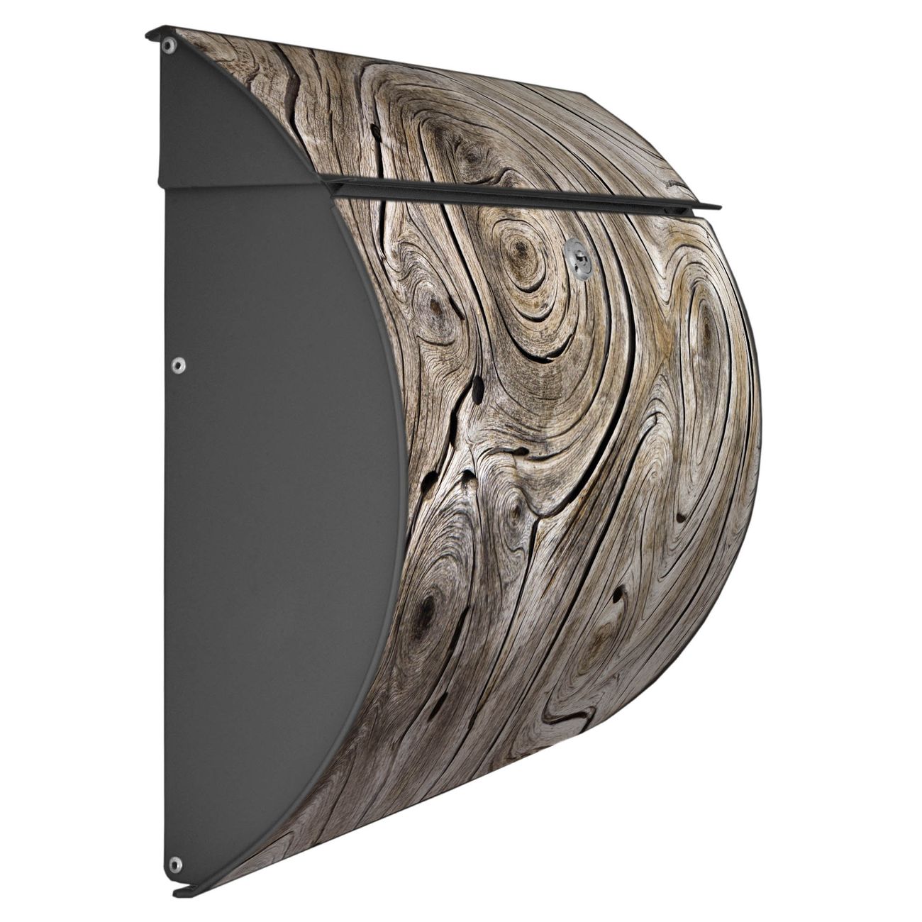 FUNKTION: DESIGN: Das Burg Wächter Modell Toscana mit Motiv Holzwirbel hat ein sehr ansprechendes und zeitloses Design und ist besonderes wetterfest. Heben Sie Sich von der tristen grauen Masse ab, ohne auf Funktionalität zu verzichten. Wir bieten Ihnen ebenfalls Namensschilder, bereits beschriftet oder frei zu beschriften, und verschiedene selbst gestaltete Bitte-Keine-Werbung-Aufkleber. DETAILS: Der Postkasten besteht aus vollflächig verzinktem Stahl welcher in Anthrazit oder Weiß lackiert wurde oder aus Edelstahl (je nach gewählter Variante). Das Motiv besteht aus einer wetter- und UV-festen Folie, die mit einem Schutzlaminat überzogen ist, durch die Ihren Briefkasten zusätzlich vor Kratzern geschützt ist und auf den Briefkasten kaschiert wurde. Sie erhalten zu Ihrem neuen Design Briefkasten 2 Schlüssel sowie das passende Montagematerial. BANJADO: Ihr Briefkasten wird von Burg Wächter in Deutschland gefertigt und in unserer kleinen Manufaktur von Hand veredelt. Die Motivfolie ist lösungsmittelfrei und schutzlaminiert, dies sorgt für einen langen Halt. Wir legen großen Wert auf die Verbindung von Funktionalität und Design. Sie erhalten besondere Handarbeit aus Sachsen und Made in Germany.