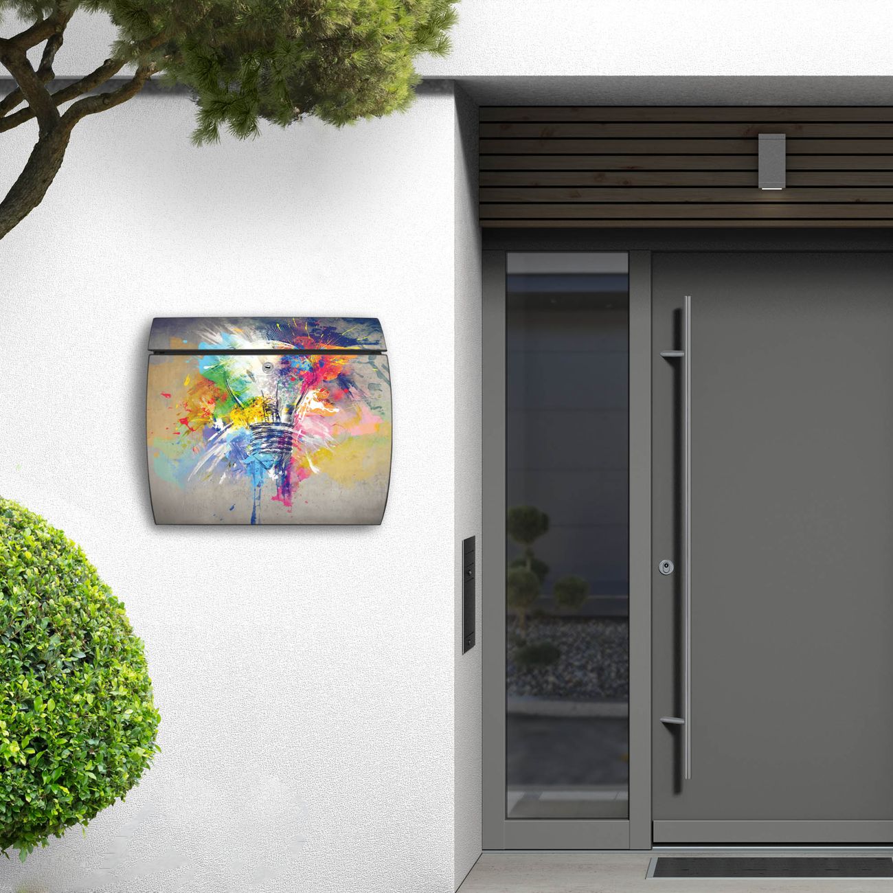 FUNKTION: DESIGN: Das Burg Wächter Modell Toscana mit Motiv Idee hat ein sehr ansprechendes und zeitloses Design und ist besonderes wetterfest. Heben Sie Sich von der tristen grauen Masse ab, ohne auf Funktionalität zu verzichten. Wir bieten Ihnen ebenfalls Namensschilder, bereits beschriftet oder frei zu beschriften, und verschiedene selbst gestaltete Bitte-Keine-Werbung-Aufkleber. DETAILS: Der Postkasten besteht aus vollflächig verzinktem Stahl welcher in Anthrazit oder Weiß lackiert wurde oder aus Edelstahl (je nach gewählter Variante). Das Motiv besteht aus einer wetter- und UV-festen Folie, die mit einem Schutzlaminat überzogen ist, durch die Ihren Briefkasten zusätzlich vor Kratzern geschützt ist und auf den Briefkasten kaschiert wurde. Sie erhalten zu Ihrem neuen Design Briefkasten 2 Schlüssel sowie das passende Montagematerial. BANJADO: Ihr Briefkasten wird von Burg Wächter in Deutschland gefertigt und in unserer kleinen Manufaktur von Hand veredelt. Die Motivfolie ist lösungsmittelfrei und schutzlaminiert, dies sorgt für einen langen Halt. Wir legen großen Wert auf die Verbindung von Funktionalität und Design. Sie erhalten besondere Handarbeit aus Sachsen und Made in Germany.