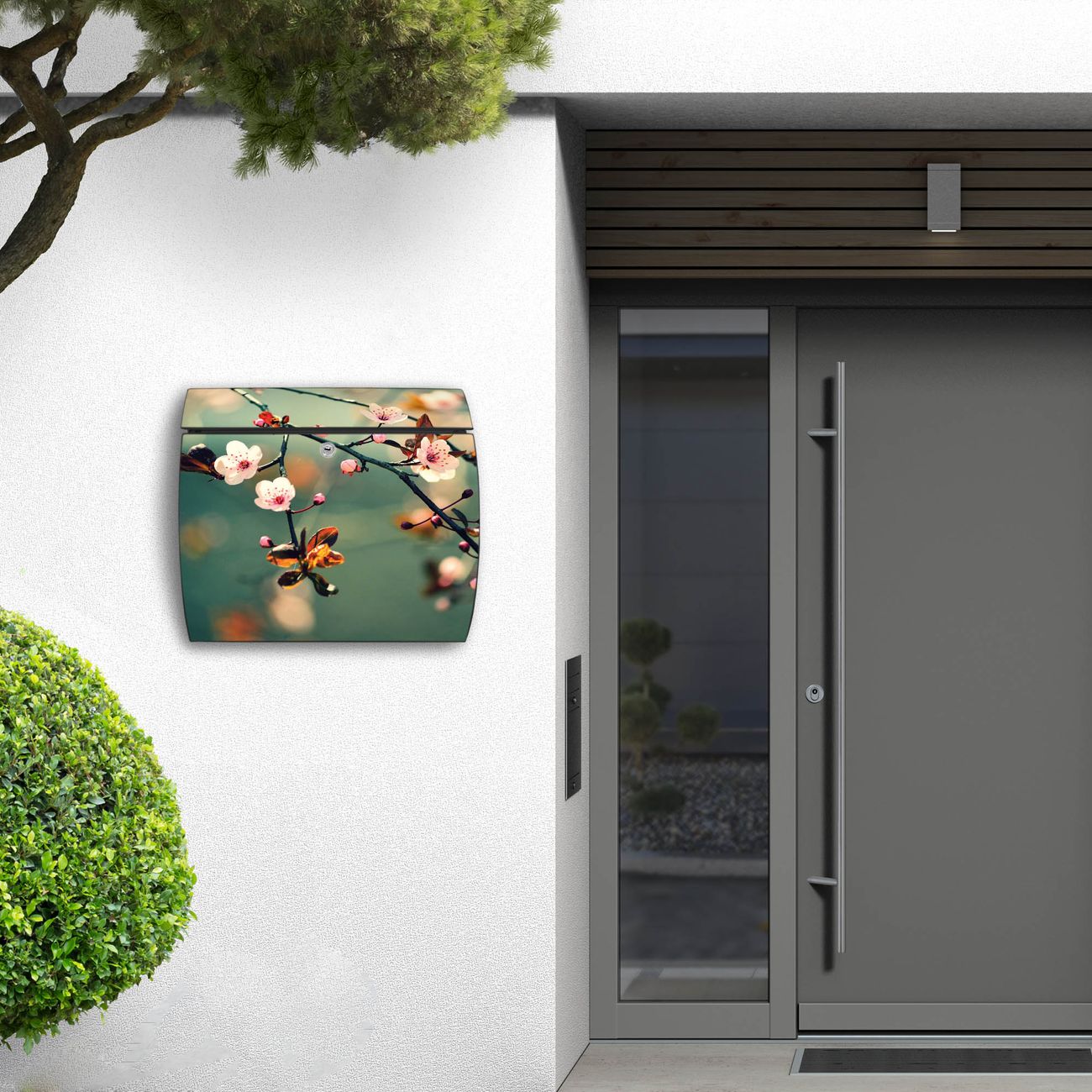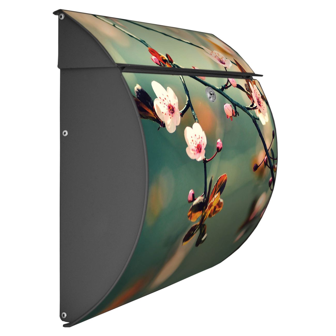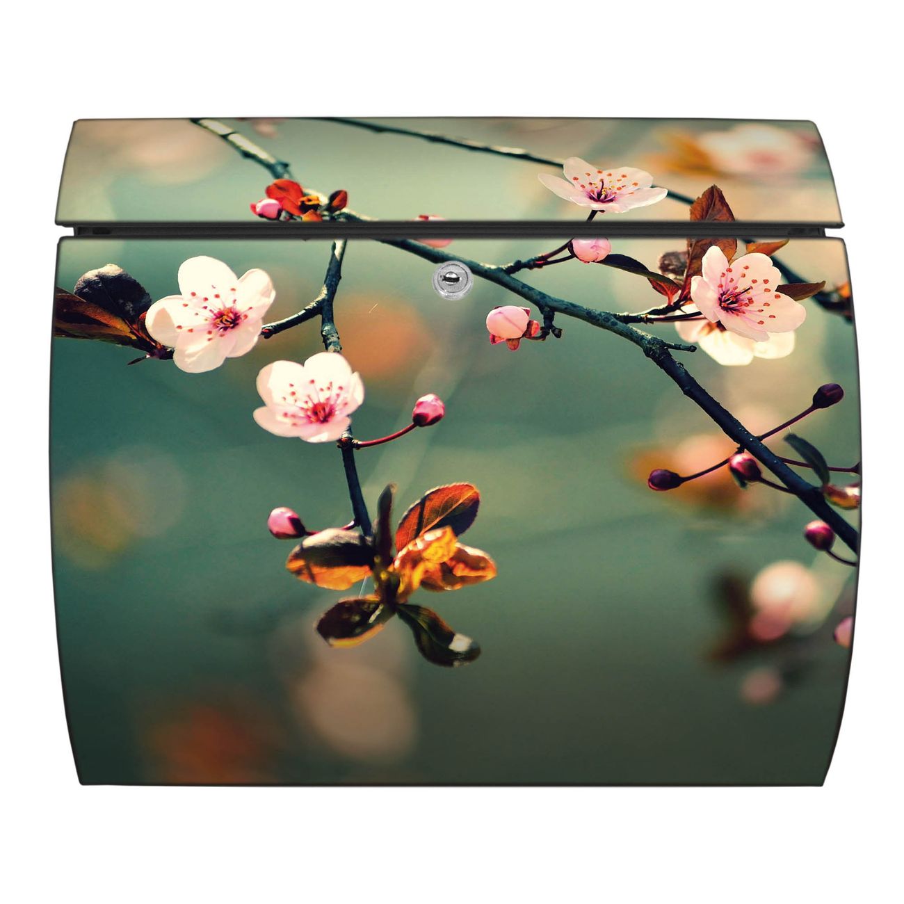 FUNKTION: DESIGN: Das Burg Wächter Modell Toscana mit Motiv Japankirsche hat ein sehr ansprechendes und zeitloses Design und ist besonderes wetterfest. Heben Sie Sich von der tristen grauen Masse ab, ohne auf Funktionalität zu verzichten. Wir bieten Ihnen ebenfalls Namensschilder, bereits beschriftet oder frei zu beschriften, und verschiedene selbst gestaltete Bitte-Keine-Werbung-Aufkleber. DETAILS: Der Postkasten besteht aus vollflächig verzinktem Stahl welcher in Anthrazit oder Weiß lackiert wurde oder aus Edelstahl (je nach gewählter Variante). Das Motiv besteht aus einer wetter- und UV-festen Folie, die mit einem Schutzlaminat überzogen ist, durch die Ihren Briefkasten zusätzlich vor Kratzern geschützt ist und auf den Briefkasten kaschiert wurde. Sie erhalten zu Ihrem neuen Design Briefkasten 2 Schlüssel sowie das passende Montagematerial. BANJADO: Ihr Briefkasten wird von Burg Wächter in Deutschland gefertigt und in unserer kleinen Manufaktur von Hand veredelt. Die Motivfolie ist lösungsmittelfrei und schutzlaminiert, dies sorgt für einen langen Halt. Wir legen großen Wert auf die Verbindung von Funktionalität und Design. Sie erhalten besondere Handarbeit aus Sachsen und Made in Germany.