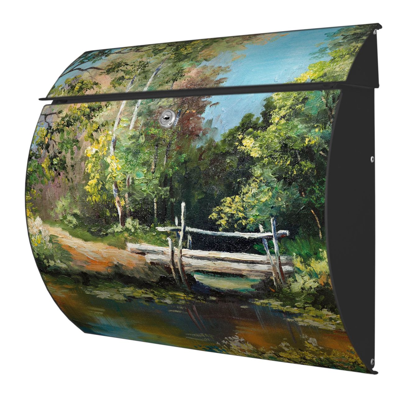 FUNKTION: DESIGN: Das Burg Wächter Modell Toscana mit Motiv Kleine Brücke hat ein sehr ansprechendes und zeitloses Design und ist besonderes wetterfest. Heben Sie Sich von der tristen grauen Masse ab, ohne auf Funktionalität zu verzichten. Wir bieten Ihnen ebenfalls Namensschilder, bereits beschriftet oder frei zu beschriften, und verschiedene selbst gestaltete Bitte-Keine-Werbung-Aufkleber. DETAILS: Der Postkasten besteht aus vollflächig verzinktem Stahl welcher in Anthrazit oder Weiß lackiert wurde oder aus Edelstahl (je nach gewählter Variante). Das Motiv besteht aus einer wetter- und UV-festen Folie, die mit einem Schutzlaminat überzogen ist, durch die Ihren Briefkasten zusätzlich vor Kratzern geschützt ist und auf den Briefkasten kaschiert wurde. Sie erhalten zu Ihrem neuen Design Briefkasten 2 Schlüssel sowie das passende Montagematerial. BANJADO: Ihr Briefkasten wird von Burg Wächter in Deutschland gefertigt und in unserer kleinen Manufaktur von Hand veredelt. Die Motivfolie ist lösungsmittelfrei und schutzlaminiert, dies sorgt für einen langen Halt. Wir legen großen Wert auf die Verbindung von Funktionalität und Design. Sie erhalten besondere Handarbeit aus Sachsen und Made in Germany.