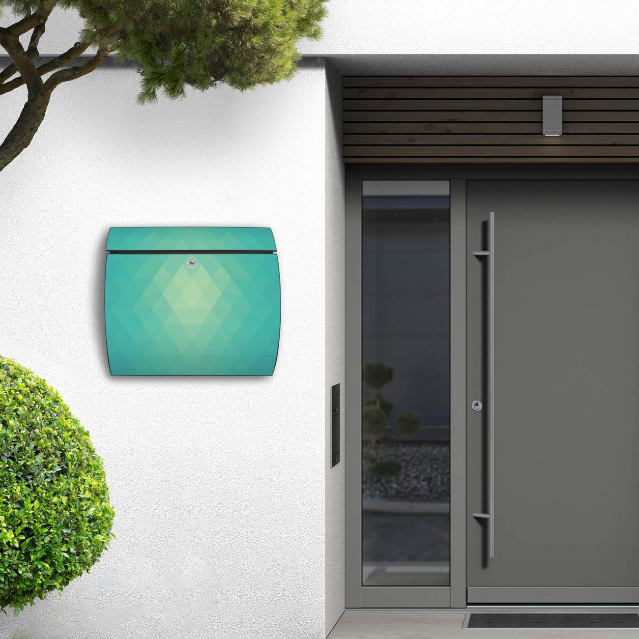 FUNKTION: DESIGN: Das Burg Wächter Modell Toscana mit Motiv Meeresblau hat ein sehr ansprechendes und zeitloses Design und ist besonderes wetterfest. Heben Sie Sich von der tristen grauen Masse ab, ohne auf Funktionalität zu verzichten. Wir bieten Ihnen ebenfalls Namensschilder, bereits beschriftet oder frei zu beschriften, und verschiedene selbst gestaltete Bitte-Keine-Werbung-Aufkleber. DETAILS: Der Postkasten besteht aus vollflächig verzinktem Stahl welcher in Anthrazit oder Weiß lackiert wurde oder aus Edelstahl (je nach gewählter Variante). Das Motiv besteht aus einer wetter- und UV-festen Folie, die mit einem Schutzlaminat überzogen ist, durch die Ihren Briefkasten zusätzlich vor Kratzern geschützt ist und auf den Briefkasten kaschiert wurde. Sie erhalten zu Ihrem neuen Design Briefkasten 2 Schlüssel sowie das passende Montagematerial. BANJADO: Ihr Briefkasten wird von Burg Wächter in Deutschland gefertigt und in unserer kleinen Manufaktur von Hand veredelt. Die Motivfolie ist lösungsmittelfrei und schutzlaminiert, dies sorgt für einen langen Halt. Wir legen großen Wert auf die Verbindung von Funktionalität und Design. Sie erhalten besondere Handarbeit aus Sachsen und Made in Germany.
