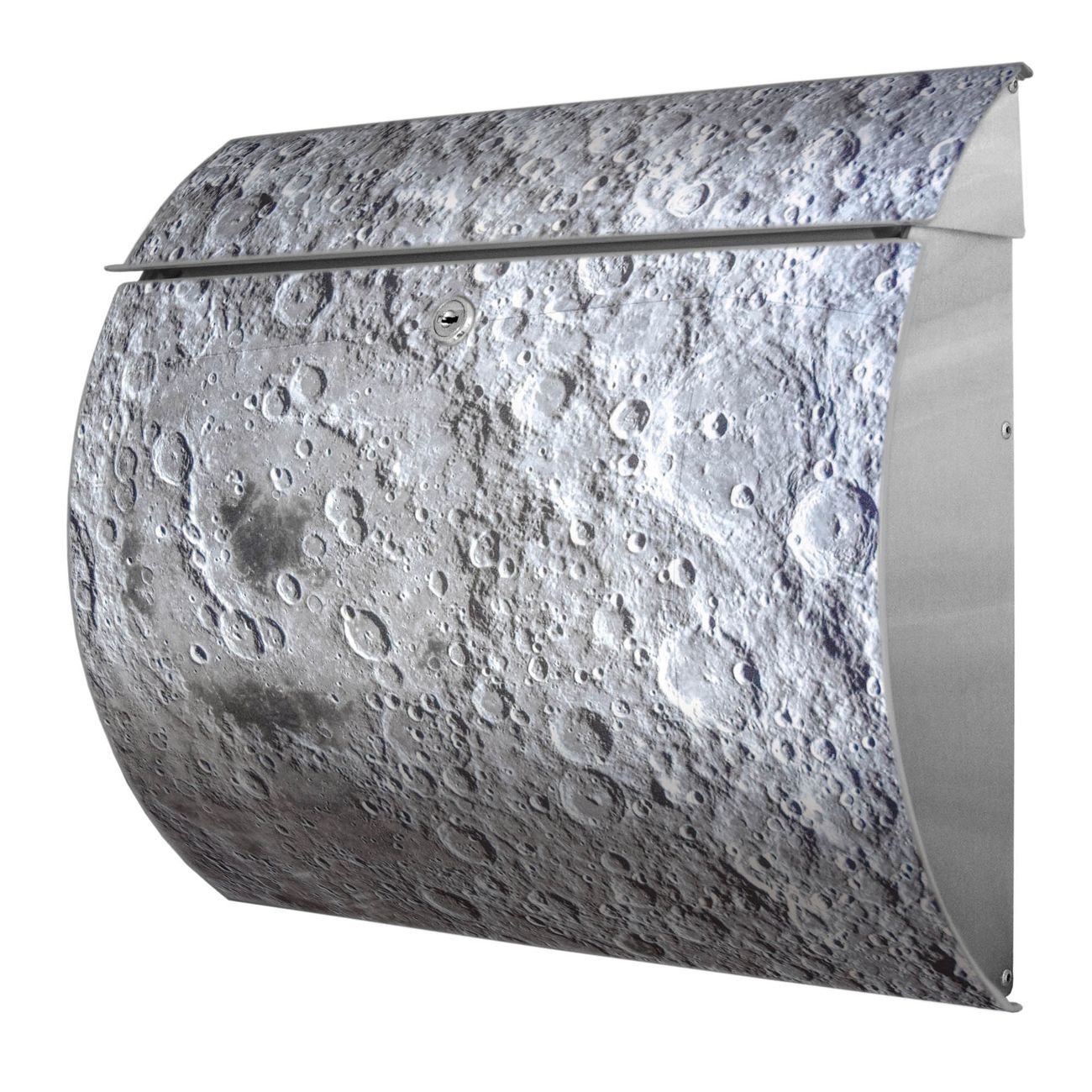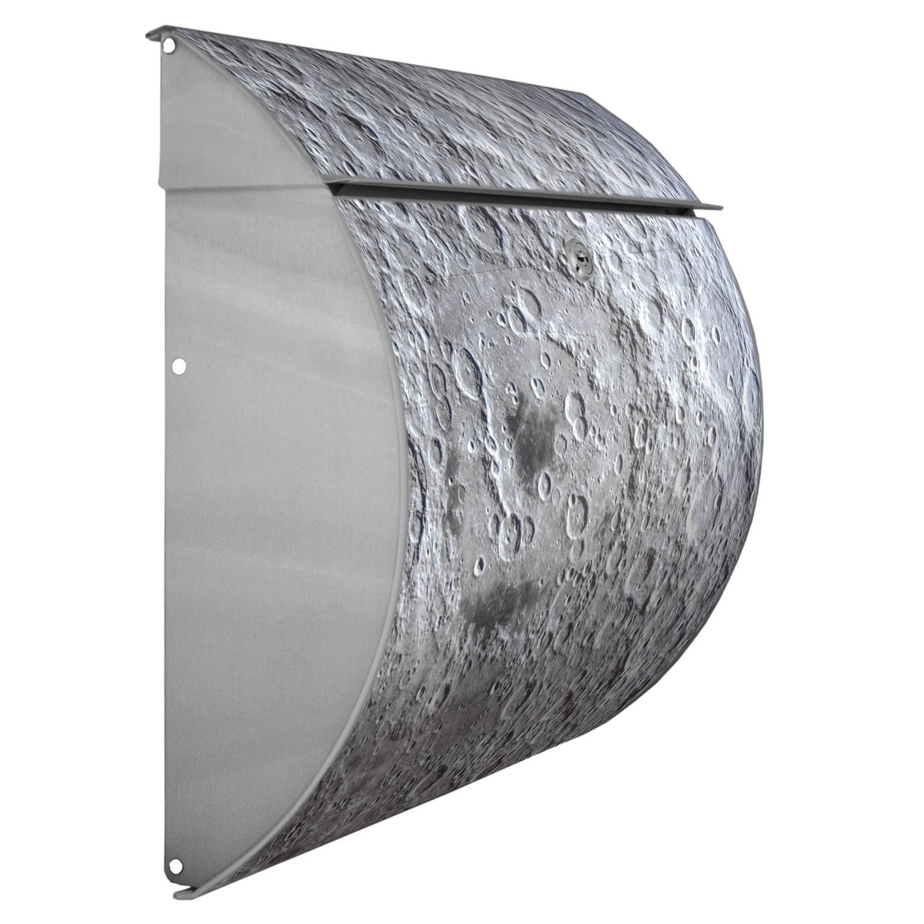 Der geschwungene Burg Wächter Briefkasten Toscana mit Motiv Mondoberfläche bietet Ihnen mit seinem großen Fassungsvermögen genügend Platz auch für große A4 Sendungen. Auf Wunsch können Sie bei uns den passenden Standfuß bestellen und so aus dem Wandbriefkasten einen Standbriefkasten machen. Der integrierte Öffnungsstopp ermöglicht eine einfache Handhabung beim Entnehmen der Post.