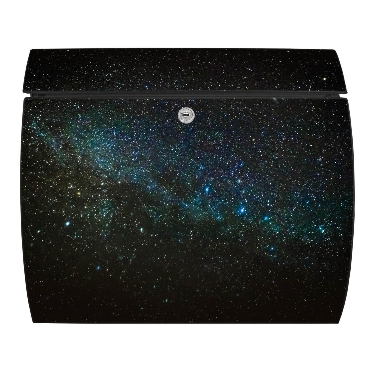 Der geschwungene Burg Wächter Briefkasten Toscana mit Motiv Nachthimmel bietet Ihnen mit seinem großen Fassungsvermögen genügend Platz auch für große A4 Sendungen. Auf Wunsch können Sie bei uns den passenden Standfuß bestellen und so aus dem Wandbriefkasten einen Standbriefkasten machen. Der integrierte Öffnungsstopp ermöglicht eine einfache Handhabung beim Entnehmen der Post.