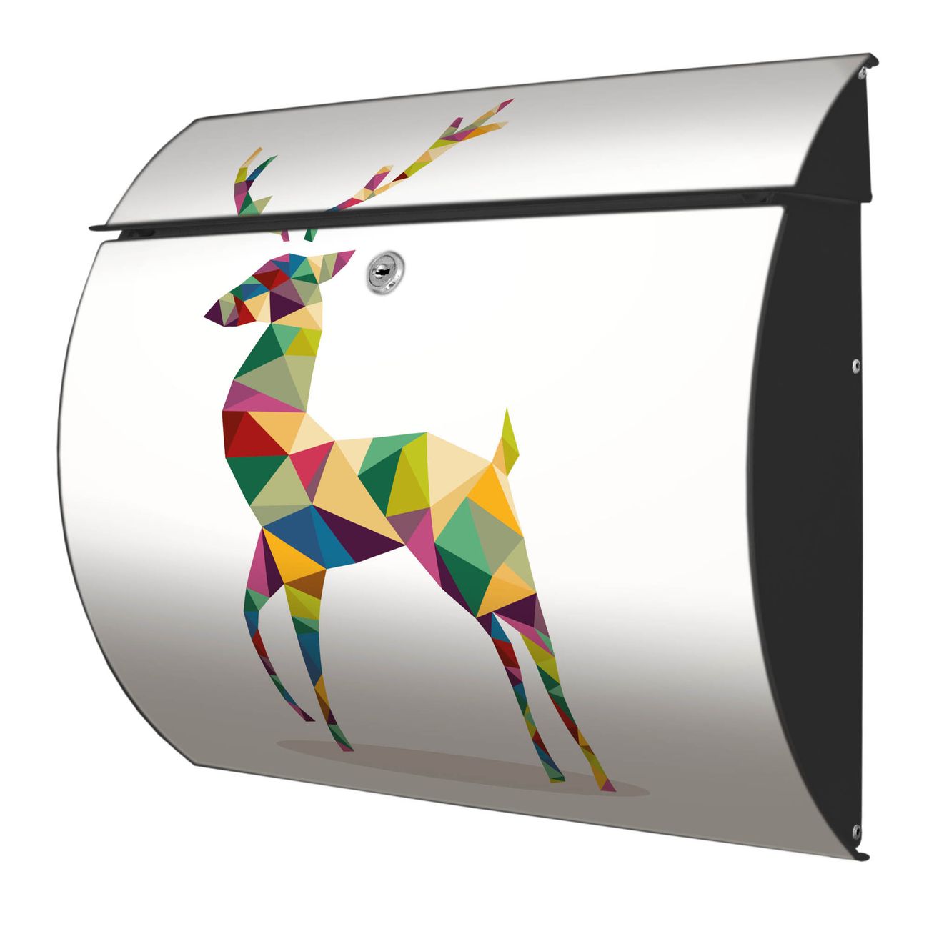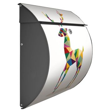 Der geschwungene Burg Wächter Briefkasten Toscana mit Motiv Origami Hirsch bietet Ihnen mit seinem großen Fassungsvermögen genügend Platz auch für große A4 Sendungen. Auf Wunsch können Sie bei uns den passenden Standfuß bestellen und so aus dem Wandbriefkasten einen Standbriefkasten machen. Der integrierte Öffnungsstopp ermöglicht eine einfache Handhabung beim Entnehmen der Post.