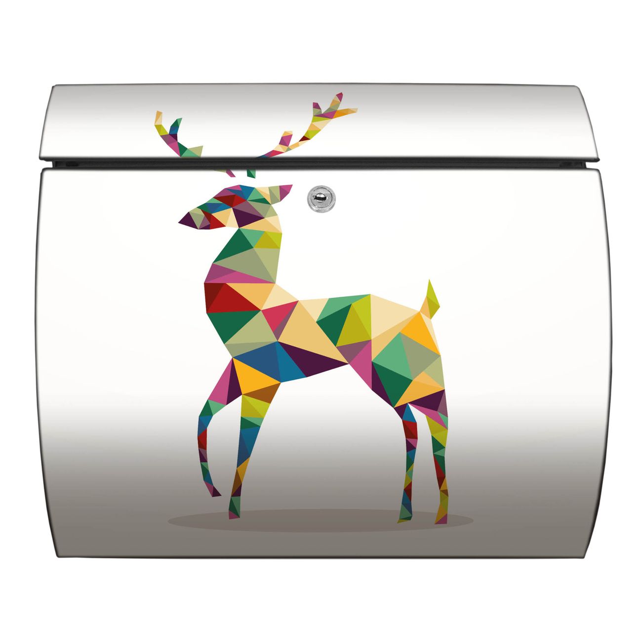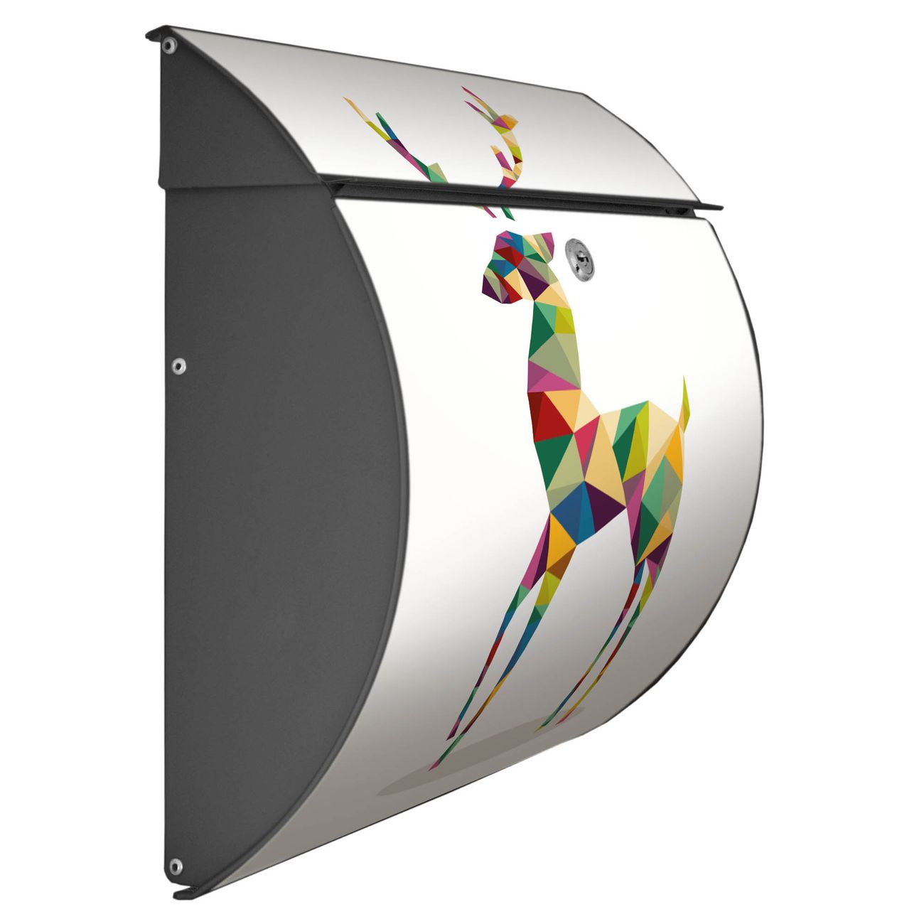 FUNKTION: DESIGN: Das Burg Wächter Modell Toscana mit Motiv Origami Hirsch hat ein sehr ansprechendes und zeitloses Design und ist besonderes wetterfest. Heben Sie Sich von der tristen grauen Masse ab, ohne auf Funktionalität zu verzichten. Wir bieten Ihnen ebenfalls Namensschilder, bereits beschriftet oder frei zu beschriften, und verschiedene selbst gestaltete Bitte-Keine-Werbung-Aufkleber. DETAILS: Der Postkasten besteht aus vollflächig verzinktem Stahl welcher in Anthrazit oder Weiß lackiert wurde oder aus Edelstahl (je nach gewählter Variante). Das Motiv besteht aus einer wetter- und UV-festen Folie, die mit einem Schutzlaminat überzogen ist, durch die Ihren Briefkasten zusätzlich vor Kratzern geschützt ist und auf den Briefkasten kaschiert wurde. Sie erhalten zu Ihrem neuen Design Briefkasten 2 Schlüssel sowie das passende Montagematerial. BANJADO: Ihr Briefkasten wird von Burg Wächter in Deutschland gefertigt und in unserer kleinen Manufaktur von Hand veredelt. Die Motivfolie ist lösungsmittelfrei und schutzlaminiert, dies sorgt für einen langen Halt. Wir legen großen Wert auf die Verbindung von Funktionalität und Design. Sie erhalten besondere Handarbeit aus Sachsen und Made in Germany.
