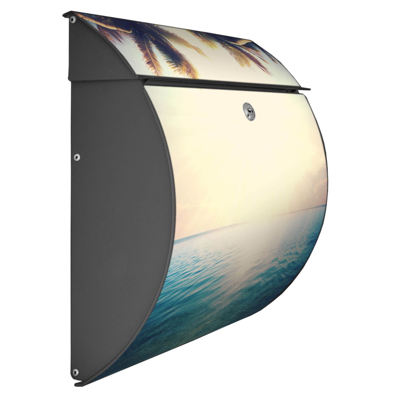 FUNKTION: DESIGN: Das Burg Wächter Modell Toscana mit Motiv Paradis hat ein sehr ansprechendes und zeitloses Design und ist besonderes wetterfest. Heben Sie Sich von der tristen grauen Masse ab, ohne auf Funktionalität zu verzichten. Wir bieten Ihnen ebenfalls Namensschilder, bereits beschriftet oder frei zu beschriften, und verschiedene selbst gestaltete Bitte-Keine-Werbung-Aufkleber. DETAILS: Der Postkasten besteht aus vollflächig verzinktem Stahl welcher in Anthrazit oder Weiß lackiert wurde oder aus Edelstahl (je nach gewählter Variante). Das Motiv besteht aus einer wetter- und UV-festen Folie, die mit einem Schutzlaminat überzogen ist, durch die Ihren Briefkasten zusätzlich vor Kratzern geschützt ist und auf den Briefkasten kaschiert wurde. Sie erhalten zu Ihrem neuen Design Briefkasten 2 Schlüssel sowie das passende Montagematerial. BANJADO: Ihr Briefkasten wird von Burg Wächter in Deutschland gefertigt und in unserer kleinen Manufaktur von Hand veredelt. Die Motivfolie ist lösungsmittelfrei und schutzlaminiert, dies sorgt für einen langen Halt. Wir legen großen Wert auf die Verbindung von Funktionalität und Design. Sie erhalten besondere Handarbeit aus Sachsen und Made in Germany.