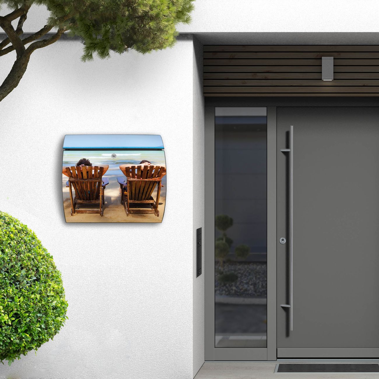 FUNKTION: DESIGN: Das Burg Wächter Modell Toscana mit Motiv Robinson Und Freitag hat ein sehr ansprechendes und zeitloses Design und ist besonderes wetterfest. Heben Sie Sich von der tristen grauen Masse ab, ohne auf Funktionalität zu verzichten. Wir bieten Ihnen ebenfalls Namensschilder, bereits beschriftet oder frei zu beschriften, und verschiedene selbst gestaltete Bitte-Keine-Werbung-Aufkleber. DETAILS: Der Postkasten besteht aus vollflächig verzinktem Stahl welcher in Anthrazit oder Weiß lackiert wurde oder aus Edelstahl (je nach gewählter Variante). Das Motiv besteht aus einer wetter- und UV-festen Folie, die mit einem Schutzlaminat überzogen ist, durch die Ihren Briefkasten zusätzlich vor Kratzern geschützt ist und auf den Briefkasten kaschiert wurde. Sie erhalten zu Ihrem neuen Design Briefkasten 2 Schlüssel sowie das passende Montagematerial. BANJADO: Ihr Briefkasten wird von Burg Wächter in Deutschland gefertigt und in unserer kleinen Manufaktur von Hand veredelt. Die Motivfolie ist lösungsmittelfrei und schutzlaminiert, dies sorgt für einen langen Halt. Wir legen großen Wert auf die Verbindung von Funktionalität und Design. Sie erhalten besondere Handarbeit aus Sachsen und Made in Germany.