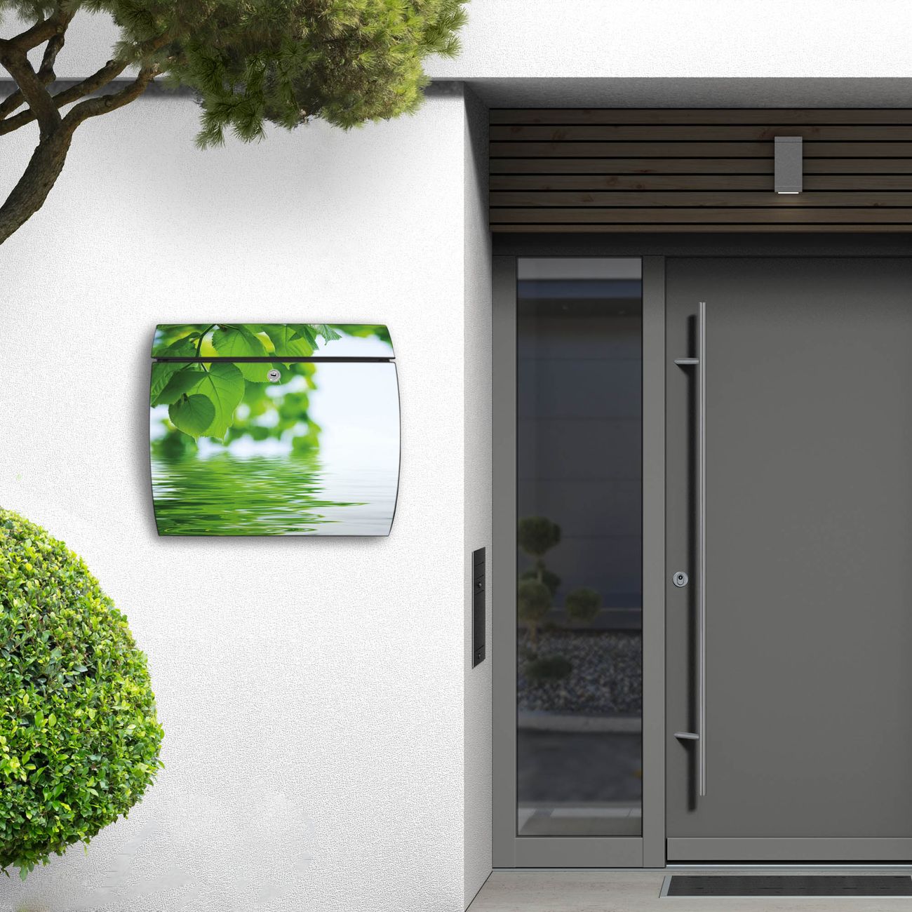 FUNKTION: DESIGN: Das Burg Wächter Modell Toscana mit Motiv Seichtes Wasser hat ein sehr ansprechendes und zeitloses Design und ist besonderes wetterfest. Heben Sie Sich von der tristen grauen Masse ab, ohne auf Funktionalität zu verzichten. Wir bieten Ihnen ebenfalls Namensschilder, bereits beschriftet oder frei zu beschriften, und verschiedene selbst gestaltete Bitte-Keine-Werbung-Aufkleber. DETAILS: Der Postkasten besteht aus vollflächig verzinktem Stahl welcher in Anthrazit oder Weiß lackiert wurde oder aus Edelstahl (je nach gewählter Variante). Das Motiv besteht aus einer wetter- und UV-festen Folie, die mit einem Schutzlaminat überzogen ist, durch die Ihren Briefkasten zusätzlich vor Kratzern geschützt ist und auf den Briefkasten kaschiert wurde. Sie erhalten zu Ihrem neuen Design Briefkasten 2 Schlüssel sowie das passende Montagematerial. BANJADO: Ihr Briefkasten wird von Burg Wächter in Deutschland gefertigt und in unserer kleinen Manufaktur von Hand veredelt. Die Motivfolie ist lösungsmittelfrei und schutzlaminiert, dies sorgt für einen langen Halt. Wir legen großen Wert auf die Verbindung von Funktionalität und Design. Sie erhalten besondere Handarbeit aus Sachsen und Made in Germany.
