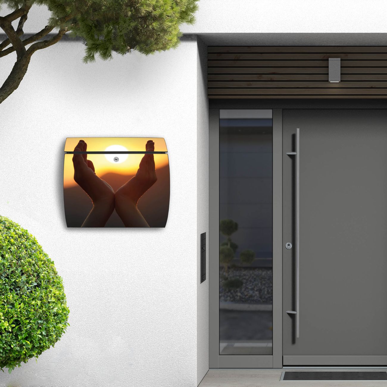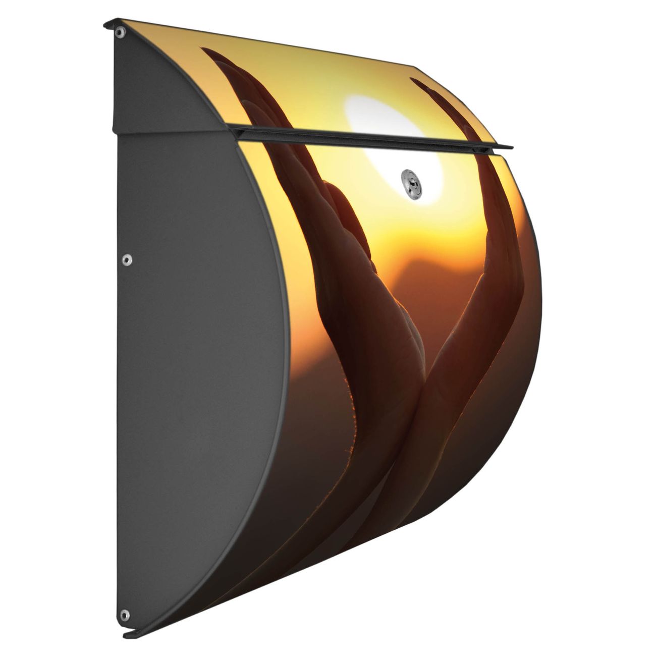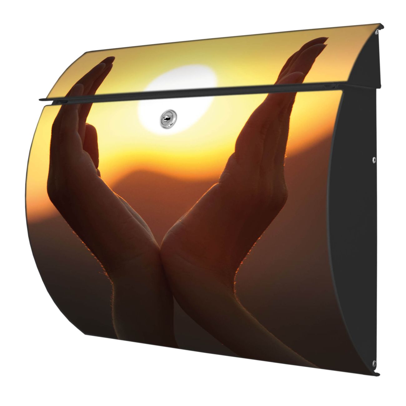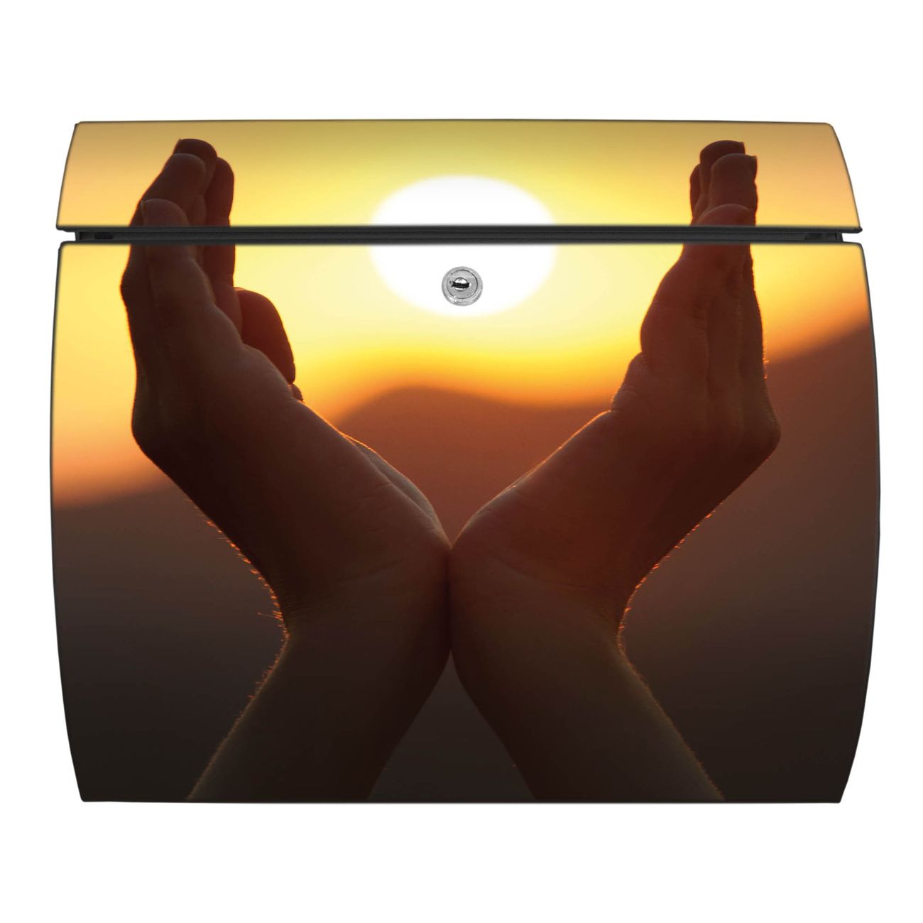 FUNKTION: DESIGN: Das Burg Wächter Modell Toscana mit Motiv Sonnenanbeter hat ein sehr ansprechendes und zeitloses Design und ist besonderes wetterfest. Heben Sie Sich von der tristen grauen Masse ab, ohne auf Funktionalität zu verzichten. Wir bieten Ihnen ebenfalls Namensschilder, bereits beschriftet oder frei zu beschriften, und verschiedene selbst gestaltete Bitte-Keine-Werbung-Aufkleber. DETAILS: Der Postkasten besteht aus vollflächig verzinktem Stahl welcher in Anthrazit oder Weiß lackiert wurde oder aus Edelstahl (je nach gewählter Variante). Das Motiv besteht aus einer wetter- und UV-festen Folie, die mit einem Schutzlaminat überzogen ist, durch die Ihren Briefkasten zusätzlich vor Kratzern geschützt ist und auf den Briefkasten kaschiert wurde. Sie erhalten zu Ihrem neuen Design Briefkasten 2 Schlüssel sowie das passende Montagematerial. BANJADO: Ihr Briefkasten wird von Burg Wächter in Deutschland gefertigt und in unserer kleinen Manufaktur von Hand veredelt. Die Motivfolie ist lösungsmittelfrei und schutzlaminiert, dies sorgt für einen langen Halt. Wir legen großen Wert auf die Verbindung von Funktionalität und Design. Sie erhalten besondere Handarbeit aus Sachsen und Made in Germany.