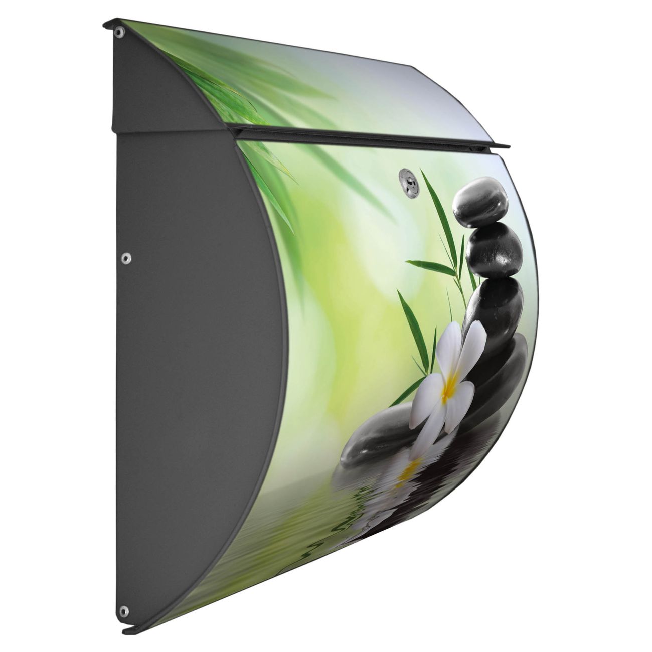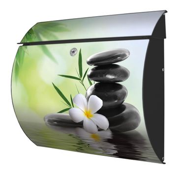 FUNKTION: DESIGN: Das Burg Wächter Modell Toscana mit Motiv Steine & Relax 6 hat ein sehr ansprechendes und zeitloses Design und ist besonderes wetterfest. Heben Sie Sich von der tristen grauen Masse ab, ohne auf Funktionalität zu verzichten. Wir bieten Ihnen ebenfalls Namensschilder, bereits beschriftet oder frei zu beschriften, und verschiedene selbst gestaltete Bitte-Keine-Werbung-Aufkleber. DETAILS: Der Postkasten besteht aus vollflächig verzinktem Stahl welcher in Anthrazit oder Weiß lackiert wurde oder aus Edelstahl (je nach gewählter Variante). Das Motiv besteht aus einer wetter- und UV-festen Folie, die mit einem Schutzlaminat überzogen ist, durch die Ihren Briefkasten zusätzlich vor Kratzern geschützt ist und auf den Briefkasten kaschiert wurde. Sie erhalten zu Ihrem neuen Design Briefkasten 2 Schlüssel sowie das passende Montagematerial. BANJADO: Ihr Briefkasten wird von Burg Wächter in Deutschland gefertigt und in unserer kleinen Manufaktur von Hand veredelt. Die Motivfolie ist lösungsmittelfrei und schutzlaminiert, dies sorgt für einen langen Halt. Wir legen großen Wert auf die Verbindung von Funktionalität und Design. Sie erhalten besondere Handarbeit aus Sachsen und Made in Germany.