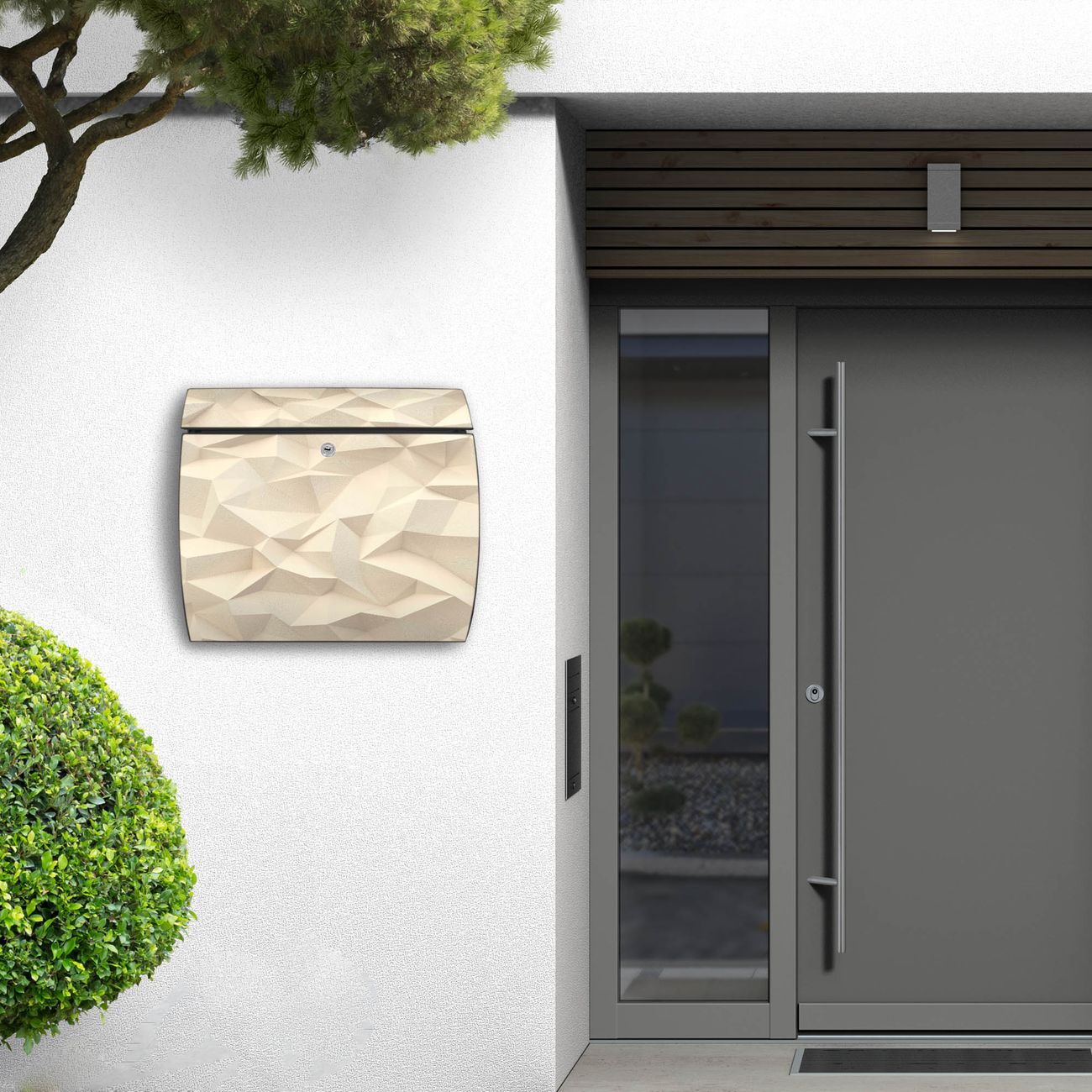 FUNKTION: DESIGN: Das Burg Wächter Modell Toscana mit Motiv Steinwand 2 hat ein sehr ansprechendes und zeitloses Design und ist besonderes wetterfest. Heben Sie Sich von der tristen grauen Masse ab, ohne auf Funktionalität zu verzichten. Wir bieten Ihnen ebenfalls Namensschilder, bereits beschriftet oder frei zu beschriften, und verschiedene selbst gestaltete Bitte-Keine-Werbung-Aufkleber. DETAILS: Der Postkasten besteht aus vollflächig verzinktem Stahl welcher in Anthrazit oder Weiß lackiert wurde oder aus Edelstahl (je nach gewählter Variante). Das Motiv besteht aus einer wetter- und UV-festen Folie, die mit einem Schutzlaminat überzogen ist, durch die Ihren Briefkasten zusätzlich vor Kratzern geschützt ist und auf den Briefkasten kaschiert wurde. Sie erhalten zu Ihrem neuen Design Briefkasten 2 Schlüssel sowie das passende Montagematerial. BANJADO: Ihr Briefkasten wird von Burg Wächter in Deutschland gefertigt und in unserer kleinen Manufaktur von Hand veredelt. Die Motivfolie ist lösungsmittelfrei und schutzlaminiert, dies sorgt für einen langen Halt. Wir legen großen Wert auf die Verbindung von Funktionalität und Design. Sie erhalten besondere Handarbeit aus Sachsen und Made in Germany.